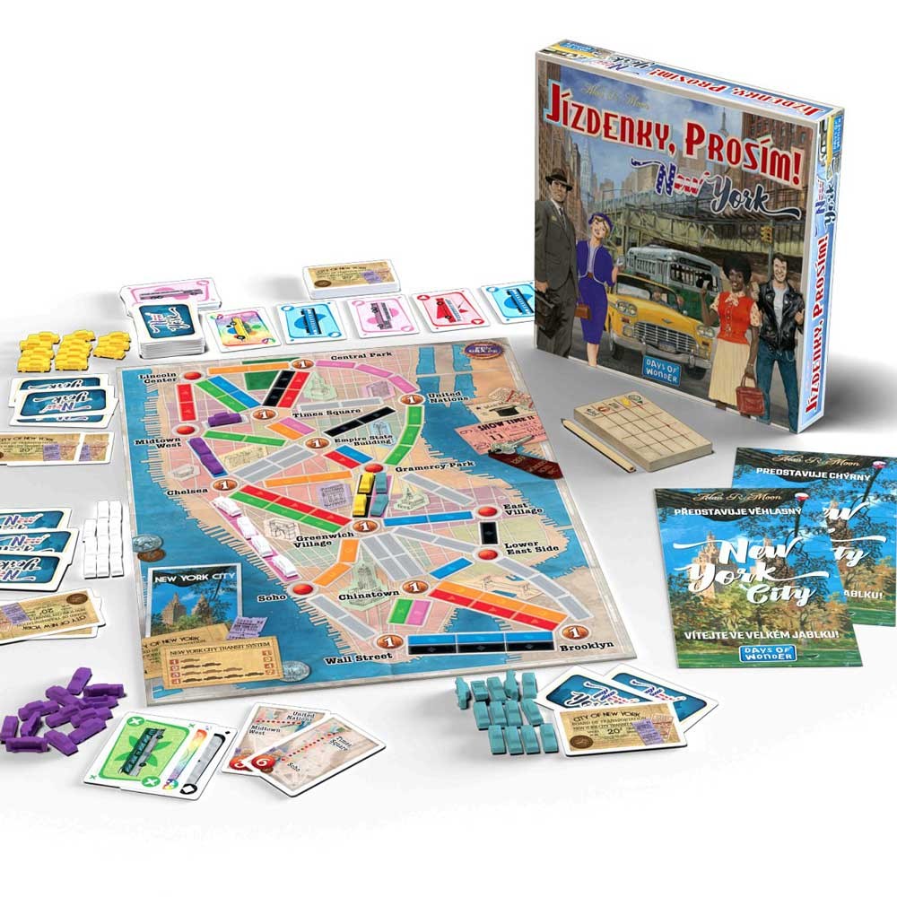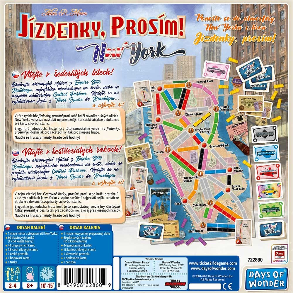 V tejto rýchlej hre Cestovné lístky, prosím! proti sebe hráči pretekajú v rušných uliciach New Yorku v snahe navštíviť najprestížnejšie turistické atrakcie a dokončiť svoje karty cieľových staníc.