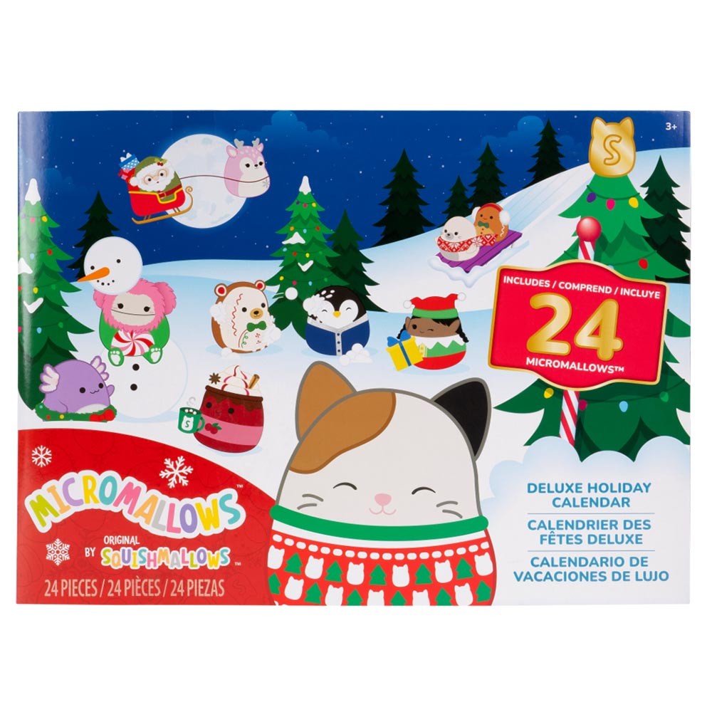 Squishmallows Micromallows - Adventný kalendár je perfektný spôsob, ako si užiť vianočné obdobie s týmito roztomilými plyšákmi. Kalendár obsahuje 24 malých plyšových hračiek, každú ukrytú za jedným z 24 okienok, ktoré môžete otvárať každý deň až do Vianoc. Výška plyšákov je cca 6 cm. Obsahuje obľúbené vianočné postavičky ako Santa Claus, snehuliak, sob a mnoho ďalších s vianočným motívom.