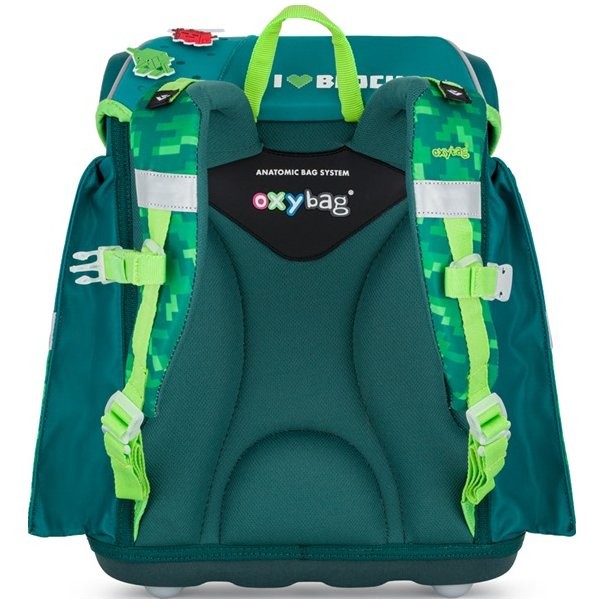 Školská aktovka pre chlapcov Oxybag radu Premium Light Playworld ponúka kvalitu, priestor na školské potreby aj odľahčenú konštrukciu pre pohodlnejšie nosenie, čo ocenia predovšetkým tí najmladší školáci s výškou od 121 cm. Aktovka do školy má vďaka odľahčenému materiálu iba 970 g. Polstrovanie je z príjemného priedušného materiálu, široké mäkčené popruhy sú navrhnuté tak, aby dokonale priľnuli a rovnomerne zaťažili ramená dieťaťa. Pre pohodlnejšie nosenie je aktovka ďalej vybavená príťažnými a hrudnými popruhmi. Aktovka je aj navyše vybavená pridanými háčikmi na uchytenie popruhov. Nechýbajú ani praktické reflexné prvky, jednoduché magnetické zapínanie, vnútorný rozraďovač aj veľké množstvo vreciek.