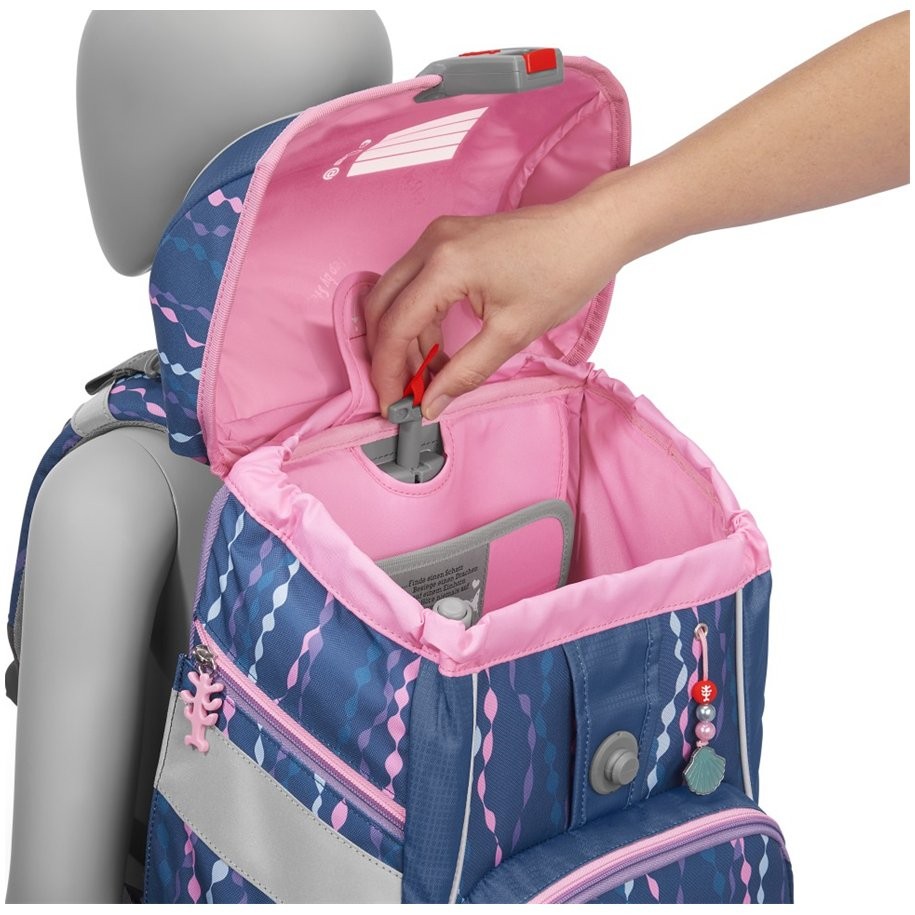 - možnosť plynulého výškového nastavenia ramenných popruhov pomocou otočného mechanizmu vo vnútri aktovky, zaisťuje presné nastavenie ramenných popruhov priamo na chrbte dieťaťa