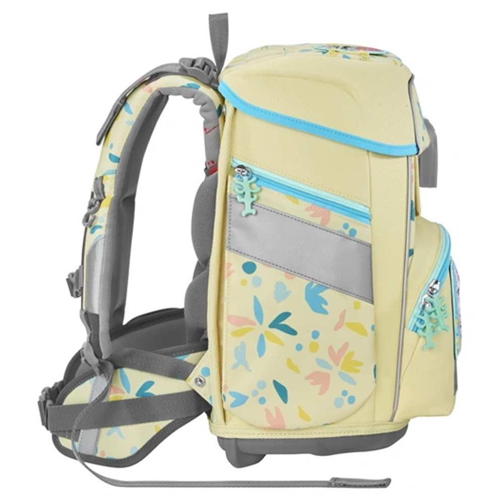 Školská taška vybavená ultraľahkým chrbtovým panelom zo sklených vlákien, ergonomicky tvarovaným chrbtom s priedušným polstrovaním a nastaviteľnými ramennými popruhmi. Súčasťou je aj výškovo nastaviteľný hrudný popruh a odnímateľný polstrovaný bedrový pás, ktoré pomáhajú rovnomerne rozložiť hmotnosť.