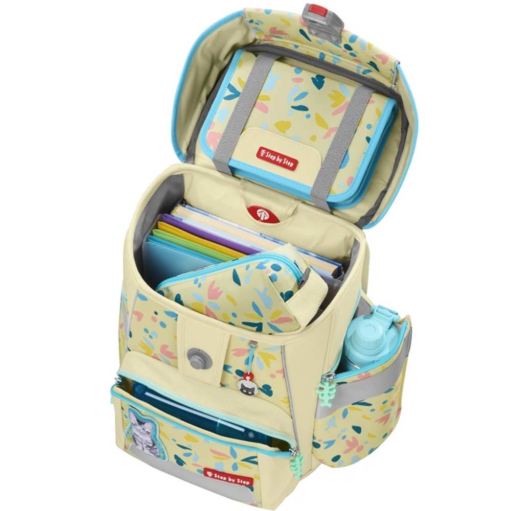 Štýlová školská aktovka Step by Step SPACE - Cat Lilly s motívom mačky je vhodná pre každú slečnu. Aktovka je priestranná a ergonomicky navrhnutá ideálna pre deti od 1. do 4. triedy s výškou 100–150 cm. Vďaka systému EASY GROW rastie spoločne s dieťaťom a zaisťuje správne usadenie na chrbte v každej fáze rastu.