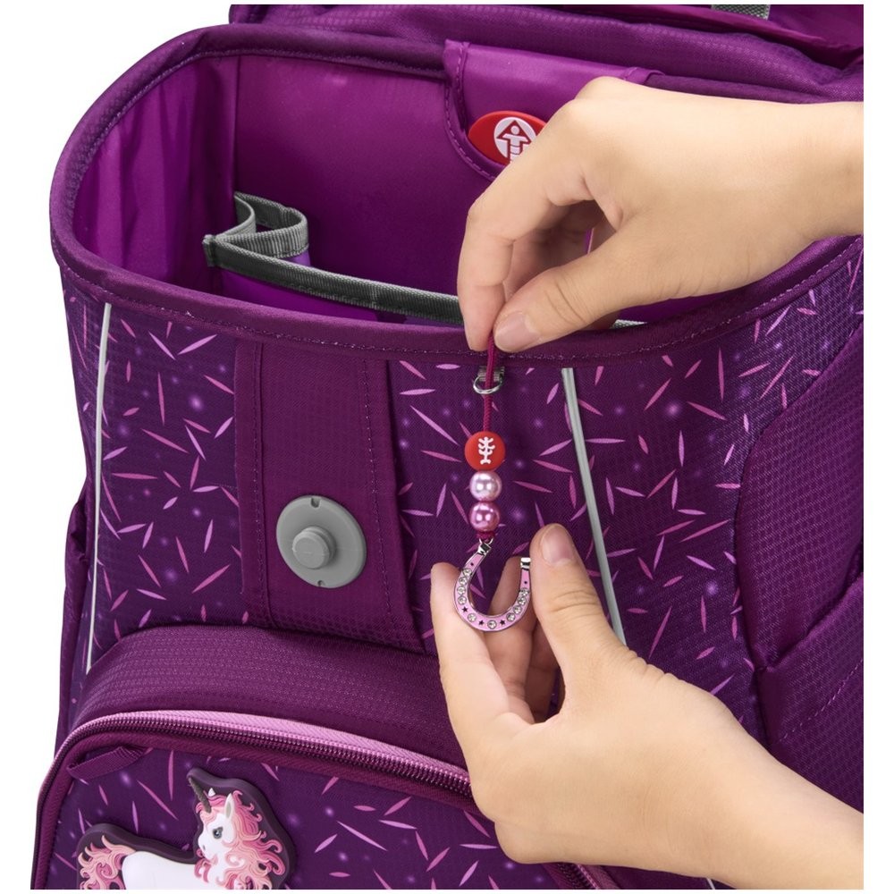 Informácie pre spotrebiteľov: Vymeniteľné obrázky MAGIC MAGS je možné z aktovky sňať a nahradiť inými MAGIC MAGS podľa osobného výberu. Vďaka tomu je každá aktovka jedinečná. Vymeniteľné obrázky MAGIC MAGS je možné zakúpiť ako samostatný set. Set sa skladá z dvoch magnetických obrázkov a jedného prívesku. Pre neutrálny dizajn môžete MAGIS MAGS z aktovky odstrániť bez toho, aby na aktovke zostali stopy po lepidle alebo suchom zipse.
