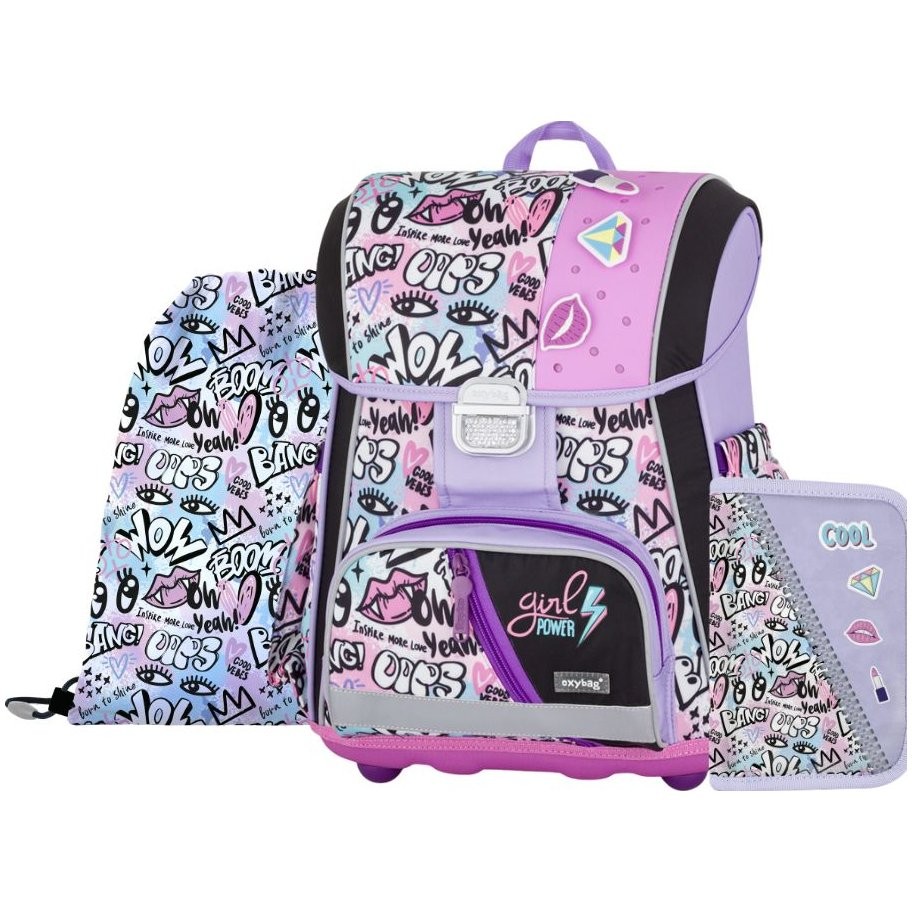 Školská taška Oxybag z radu Premium je anatomicky tvarovaná a zaisťuje tak správne usadenie na chrbte. Vystužený chrbát a vnútorná výstuha udržujú stály tvar batohu. Polstrovanie je z príjemného priedušného materiálu, široké mäkčené popruhy sú navrhnuté tak, aby dokonale priľnuli a rovnomerne zaťažili ramená dieťaťa. Aktovka sa skladá z jednej priestrannej komory, kam sa pohodlne zmestia všetky školské pomôcky pre deti v 1. av 2. triede. Dno aktovky je z pevného materiálu, chráni tým obsah pred prevrhnutím a vysypaním. Zapínanie je na bezpečnostnú kovovú pracku s reflexnou odrazkou. Predné vrecko je určené na desiatu, nechýba rad reflexných prvkov, vďaka ktorým je aktovka viditeľnejšia.
