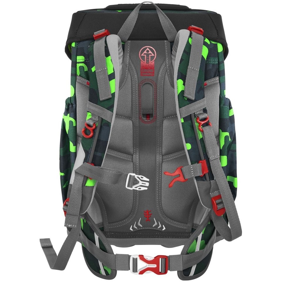 Školská taška pre prváka má hmotnosť 1 050 g a je vhodná pre väčšie deti od 120 do 170 cm výšky. Aktovka disponuje EASY GROW SYSTEMEM, ktorý rastie s dieťaťom (aktovka je vhodná pre deti od 1. do 4. triedy). Má ultraľahký chrbtový panel zo sklených vlákien, ergonomicky tvarovaný chrbát s priedušným polstrovaním a nastaviteľné a ergonomické ramenné popruhy. V prípade potreby môžete aktovku upraviť pomocou doťahovacích pásikov pre tesné doliehanie aktovky k chrbtu. Školská taška má pre zdravý chrbát vašich detí odnímateľný, výškovo nastaviteľný hrudný popruh s úchytmi na konce ramenných popruhov a polstrovaný, odnímateľný bedrový pás.