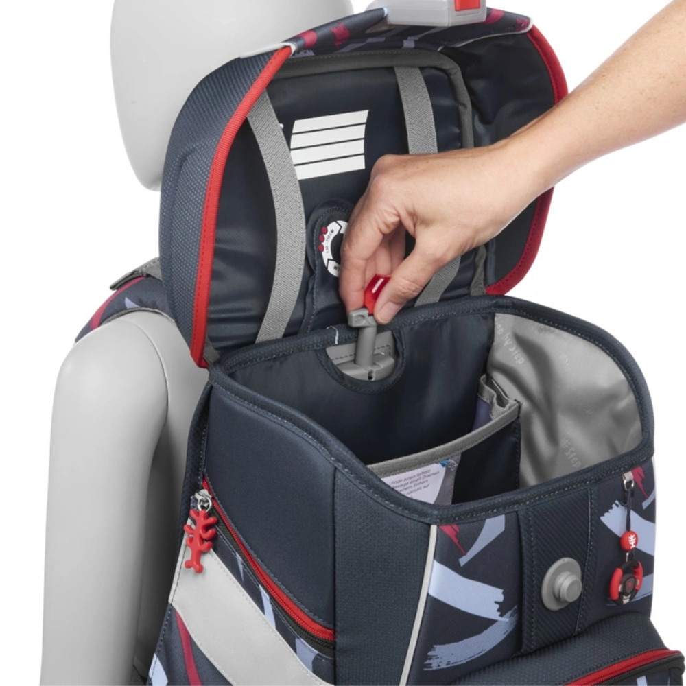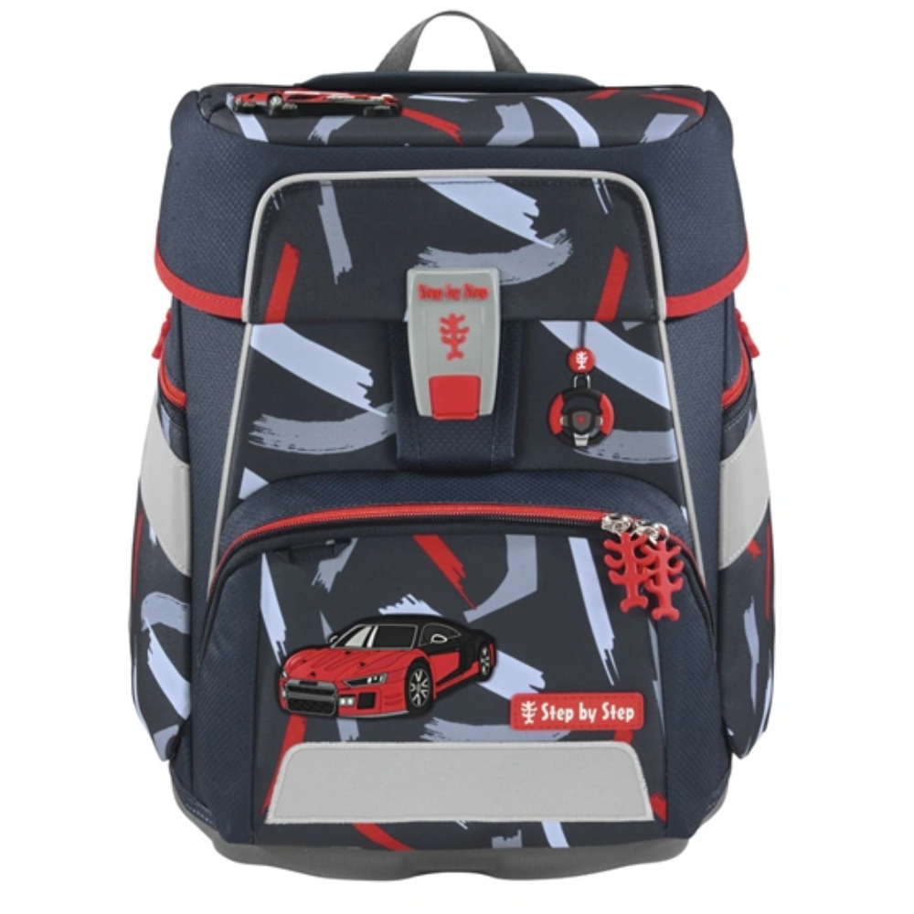 Školská aktovka Step by Step SPACE – Sports Car Mick je priestranná a ergonomicky navrhnutá aktovka vhodná pre deti od 1. do 4. triedy s výškou 100–150 cm. Vďaka systému EASY GROW rastie spoločne s dieťaťom a zaisťuje správne usadenie na chrbte v každej fáze rastu.