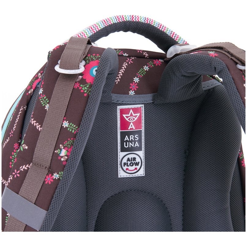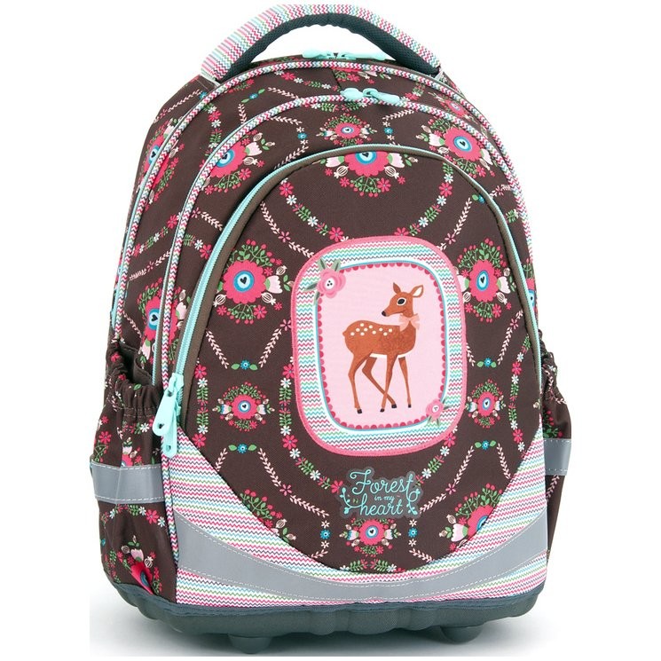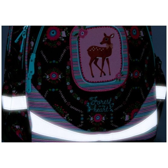 Školský batoh Ars Una z kolekcie Forest in my heart. Tento batoh je trojkomorový so zapínaním na zips. Na výrobu boli použité veľmi kvalitné materiály a tiež spracovanie je vynikajúce. Chrbát batohu sú ergonomicky tvarované a majú skvelé priedušné vlastnosti vďaka systému AirFlow. Ramenné popruhy sú veľmi pohodlné a nastaviteľné do niekoľkých polôh. Bezpečnosť zaisťuje niekoľko reflexných prvkov. Dno batohu je pevné a vodeodolné. Batoh je určený pre deti od 9. 10 rokov veku, teda žiakov prvého stupňa. Rozmer batohu je 320 x 410 x 210 mm. Váha iba 0,9 kg.