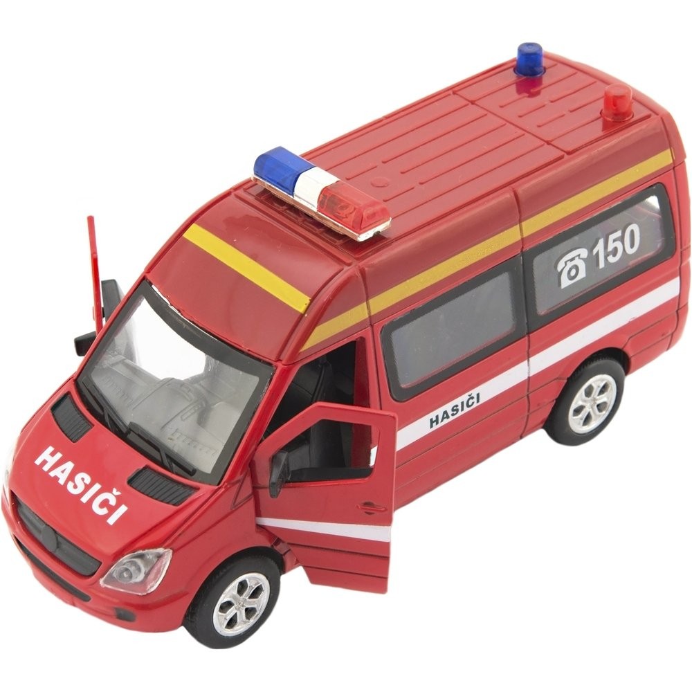 Kovové autíčko pre malé hasičov je vyrobené s plastovými doplnkami. Malý model jazdí na spätné natiahnutie, má otváracie predné a zadné dvere, vydáva zvuky štartovanie a húkačky, má efekty blikajúcich svetiel. Kúpte deťom hasičský voz! Veľkosť dodávky je 15cm. Batérie 3x AG14 sú súčasťou balenia a slúži len na skúšobné účely.