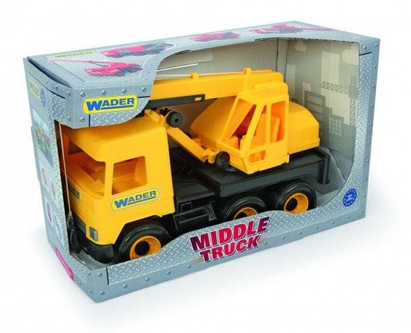 Detské plastové auto Middle Truck Žeriav je ideálna hračka ako na hranie doma tak vonku. Ideálna hračka potrebné na pieskovisko. Hračky Wader sú vyrobené z kvalitných, zdravotne nezávadných plastov, vyznačujúce sa vysokou odolnosťou proti poškodeniu. Vhodné od 12 mesiacov.