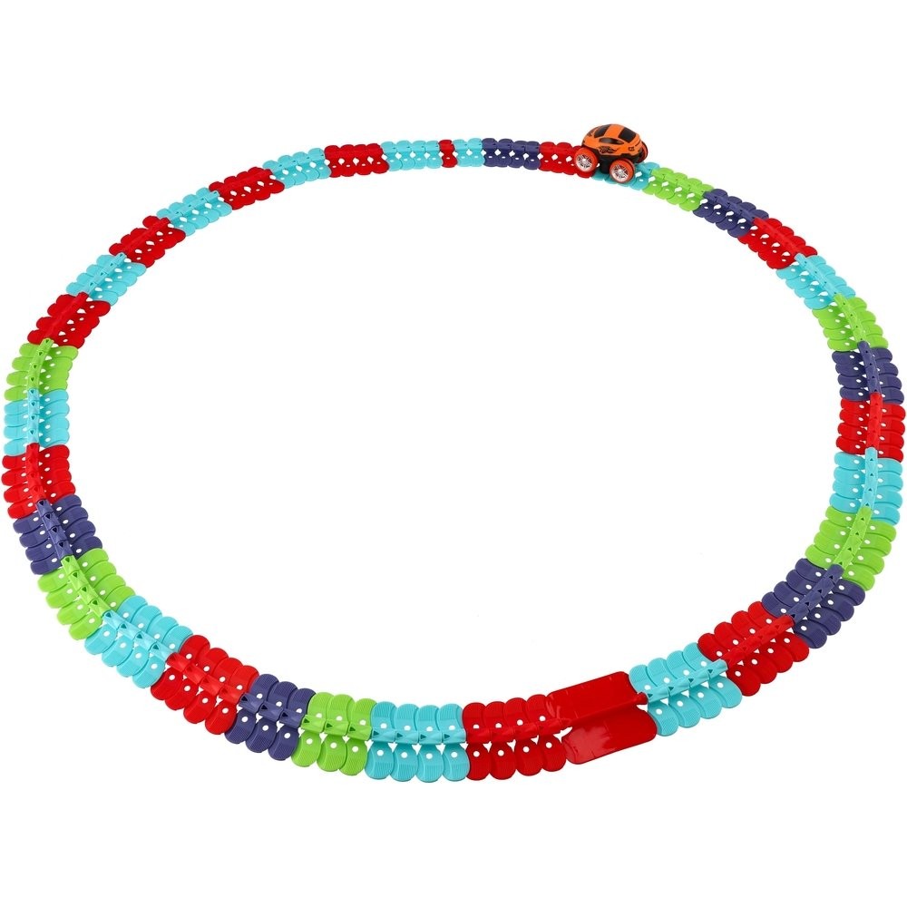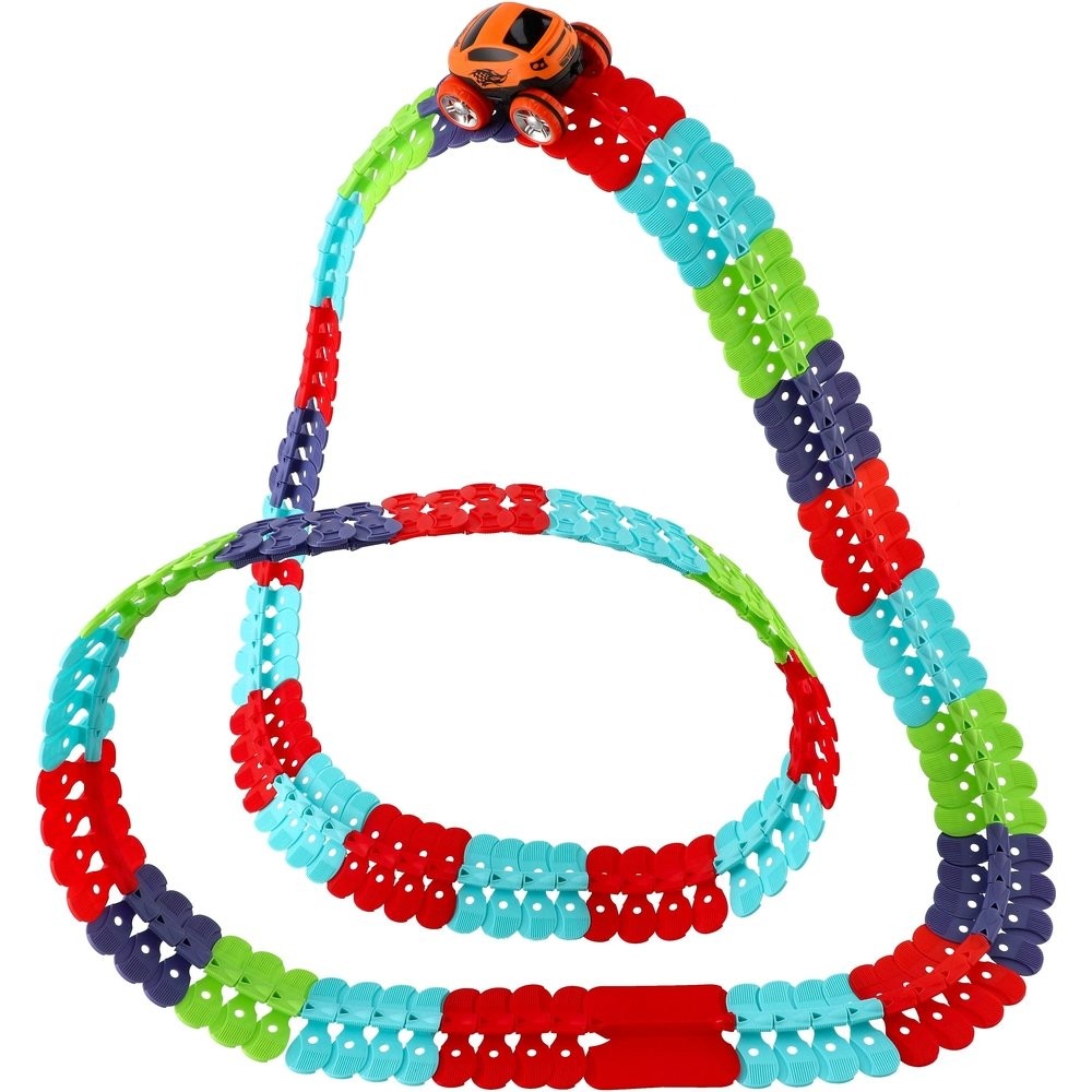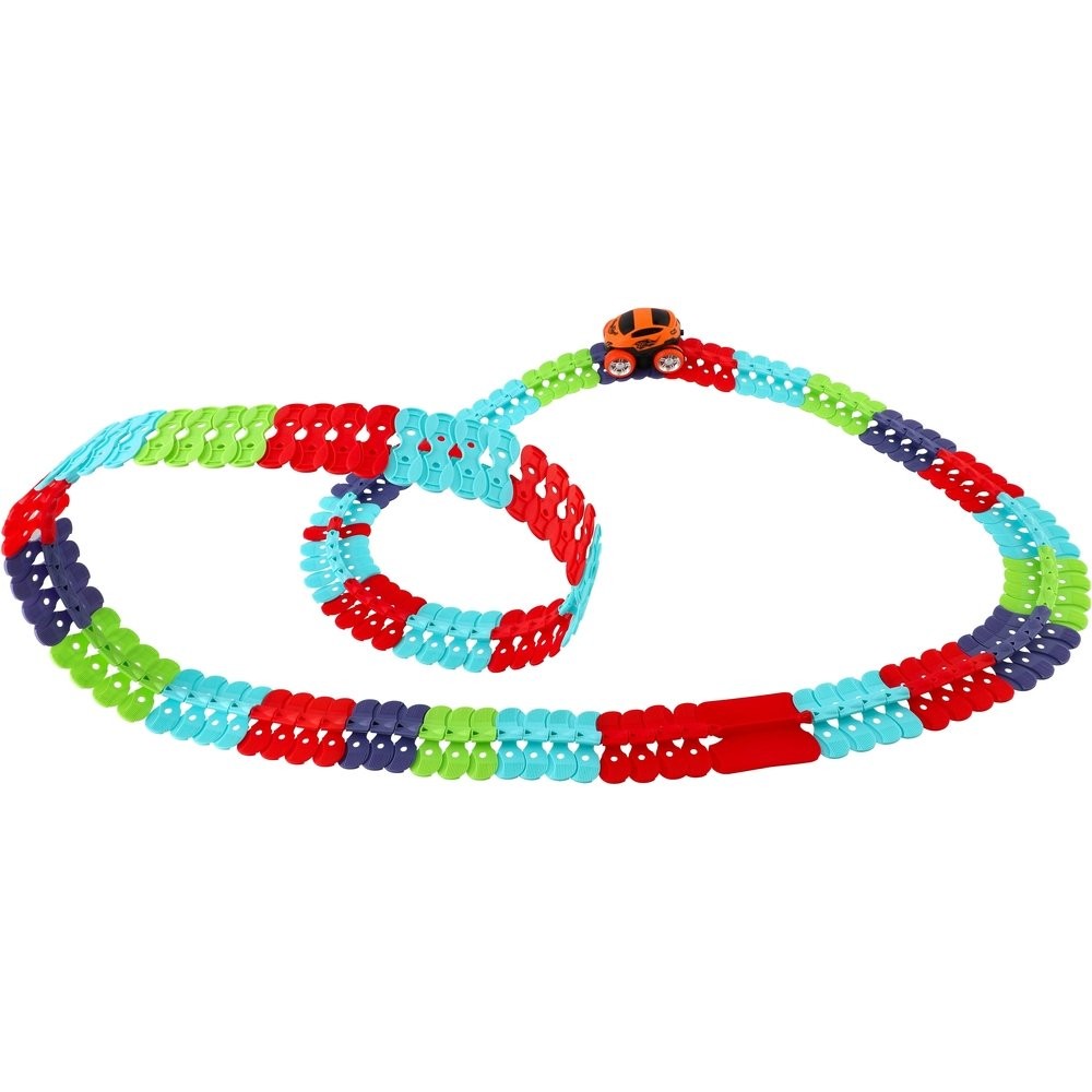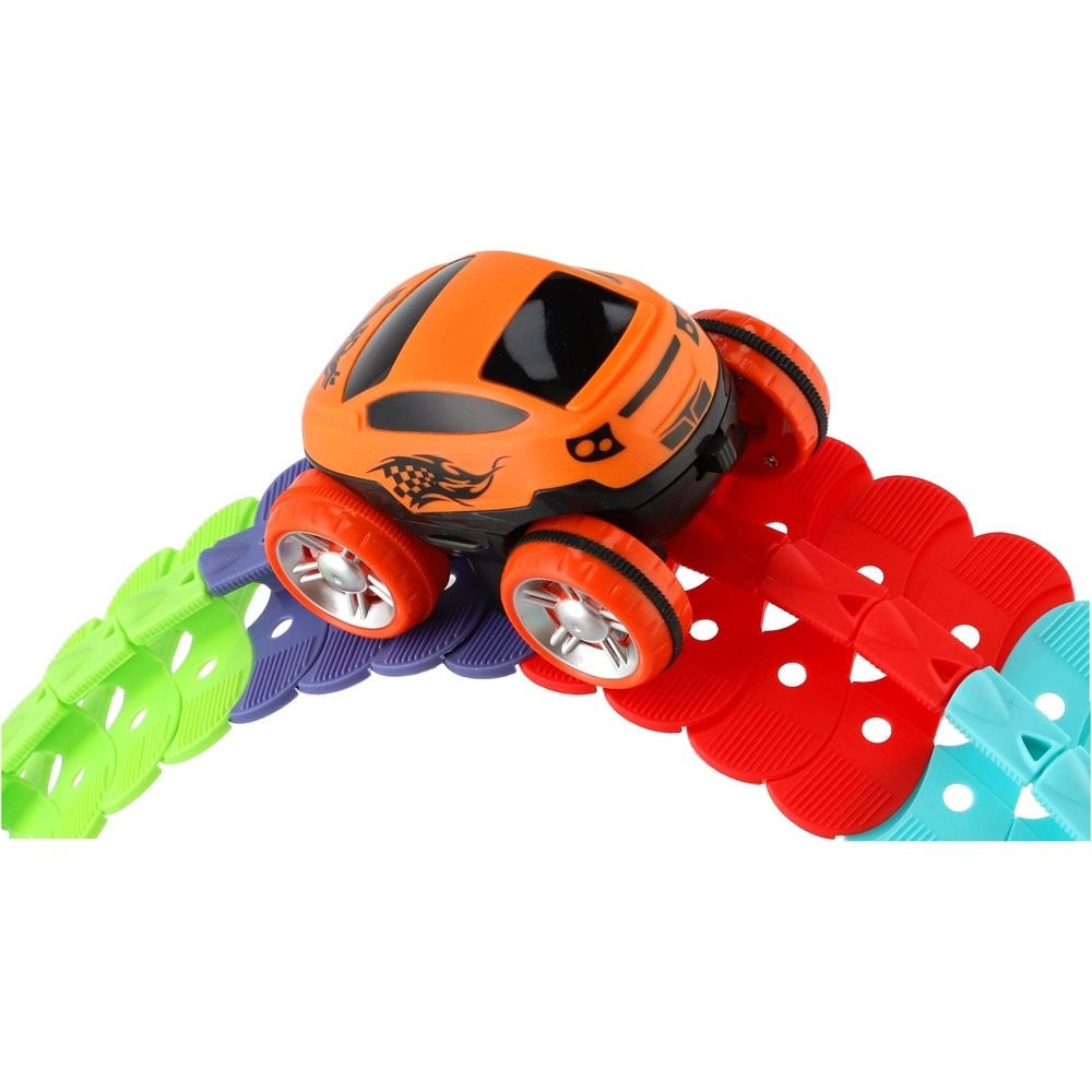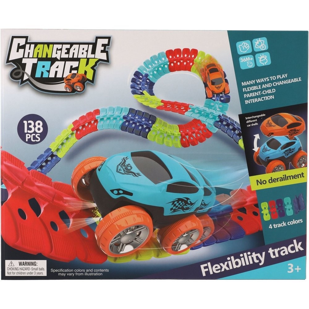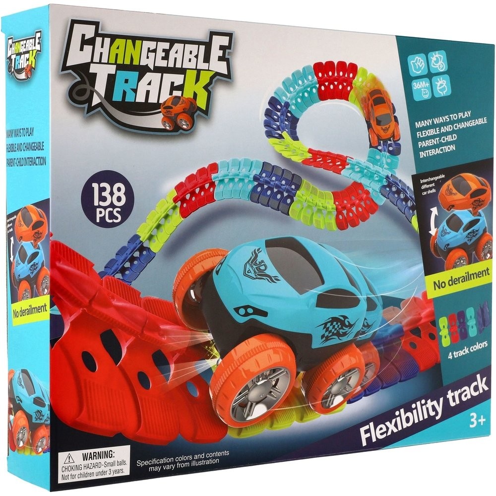 Jedinečná závodná dráha, ktorá je vyrobená z flexibilných dielov, sa dajú jednoducho pospájať do akejkoľvek farebnej kombinácie a umožňujú dráhu ohýbať a otáčať. V balení nájdete autíčko, ktoré svieti a jazdí po dráhe. Autíčko má oddeliteľnú kabínu, môžete tak mať chvíľu oranžové auto a chvíľu modré auto. Na batérie 3x AAA, ktoré nie sú súčasťou. Balenie obsahuje 138 ks + auto.