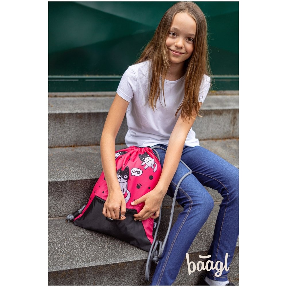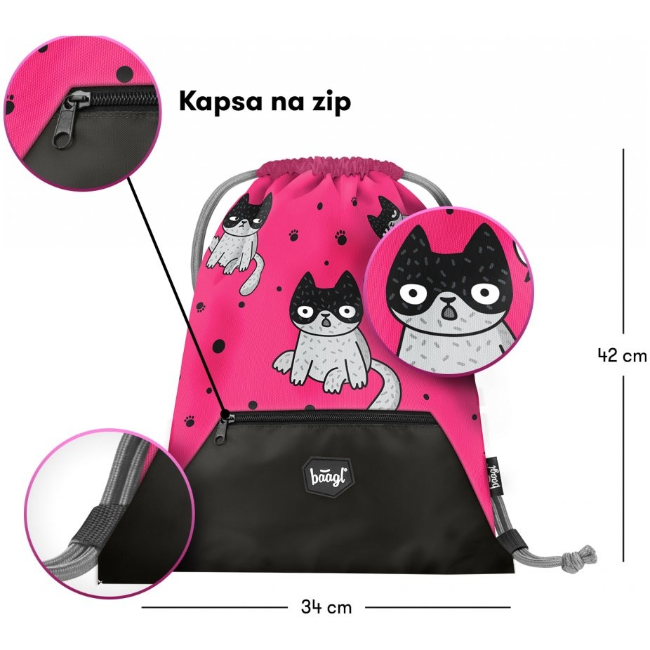 Vrecko na obuv či iné drobnosti s predným zipsovým vreckom značky Baagl vhodný pre voľnočasové aktivity detí. Je vyrobený z pevného umývateľného materiálu. Zdrhovanie pomocou pevných šnúrok, ktoré zároveň umožňujú nosenie na chrbte.