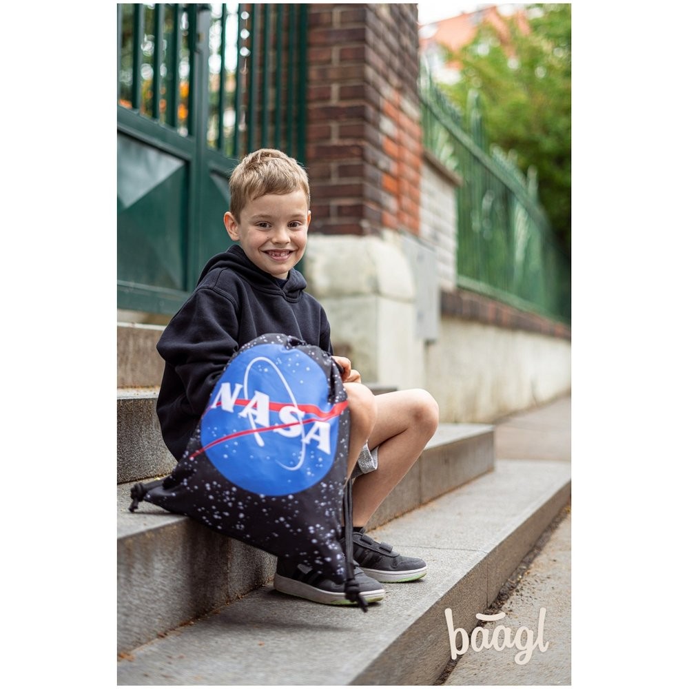 Vrecko na obuv či iné drobnosti pre chlapcov značky Baagl vhodný pre voľnočasové aktivity detí. Je vyrobený z pevného umývateľného materiálu. Zdrhovanie pomocou pevných šnúrok, ktoré zároveň umožňujú nosenie na chrbte.
