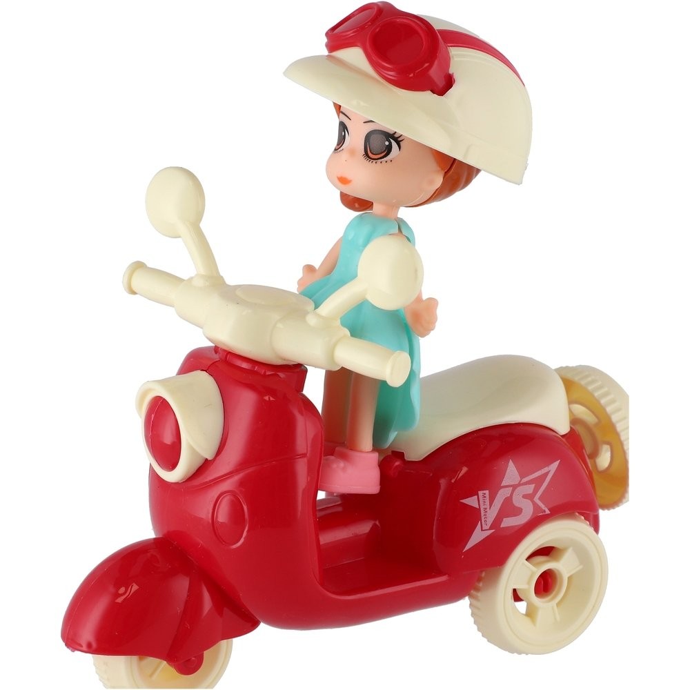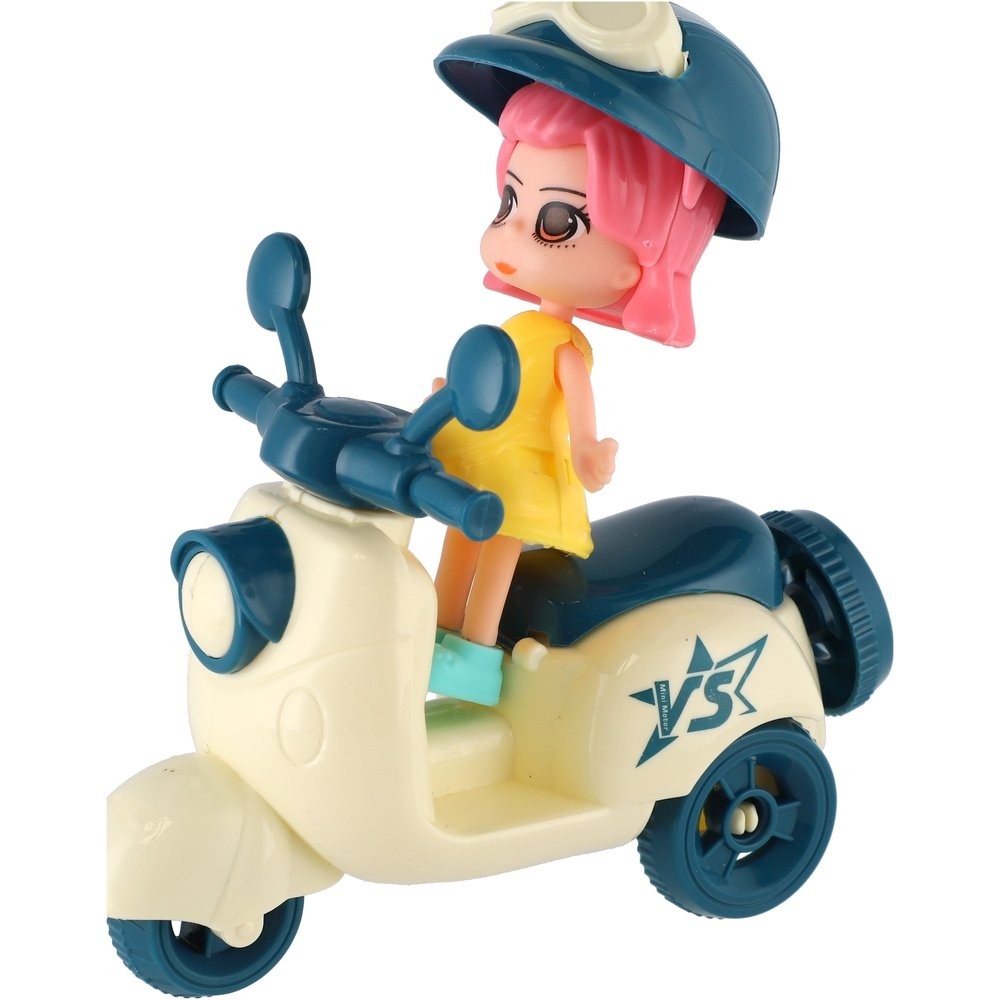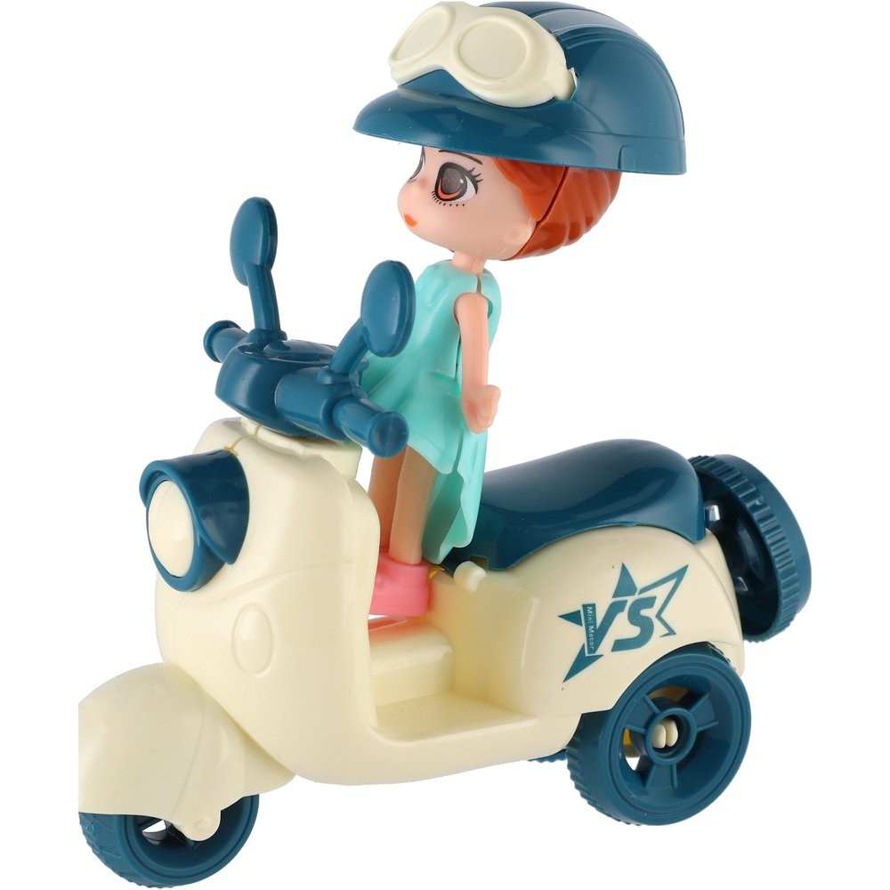 Vydaj sa s bábikou na výlet a užite si spolu krásny slnečný deň plný zábavy a dobrodružstva. Babika na skútri v letnom oblečení.