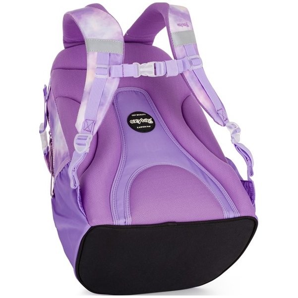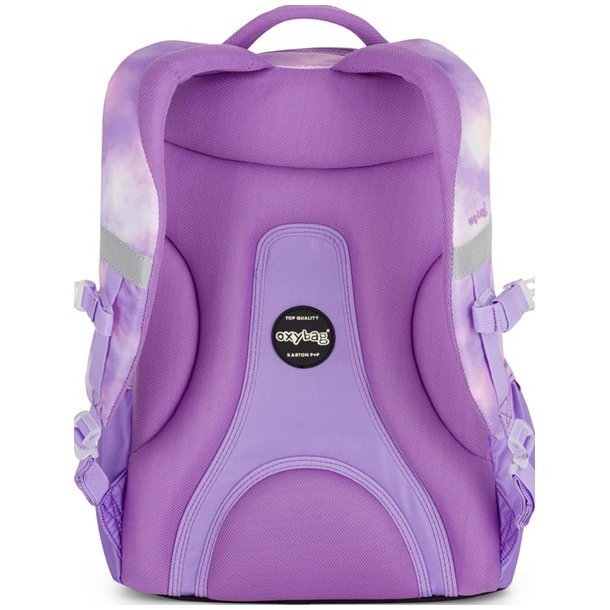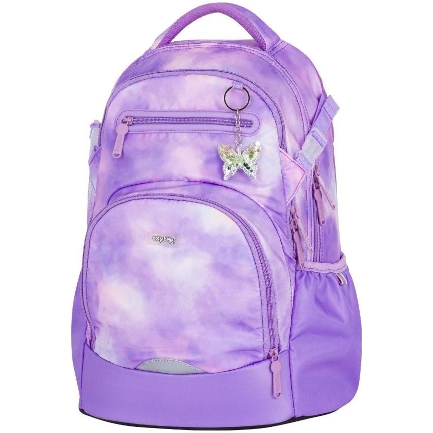 Študentský batoh z radu OXY Ombre Butterfly je ideálny pre školákov od 5. triedy. Batoh do školy je vhodný pre deti vysoké od 136 cm. Anatomicky tvarovaný chrbtový panel, polstrované ramenné popruhy a nastaviteľný hrudný popruh zaistí chrbát ako v bavlnke každému školákovi. Pevné dno zabraňuje prevrhnutiu samostatne stojaceho batohu. Školský batoh disponuje dvoma priestrannými vreckami na všetky potrebné školské pomôcky. V bočných postranných vreckách na gumu je priestor na fľašu na pitie, ktorá je ľahko dostupná na doplnenie pitného režimu každého školáka. Do predného vrecka sa ľahko schová menšia desiata. Nechýba rad reflexných prvkov. Dĺžka chrbtového panelu je 43 cm