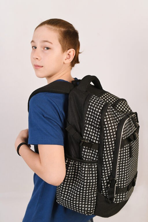 - Popruhy na prednom vrecku na uchytenie napríklad mikiny na cestu domov zo školy