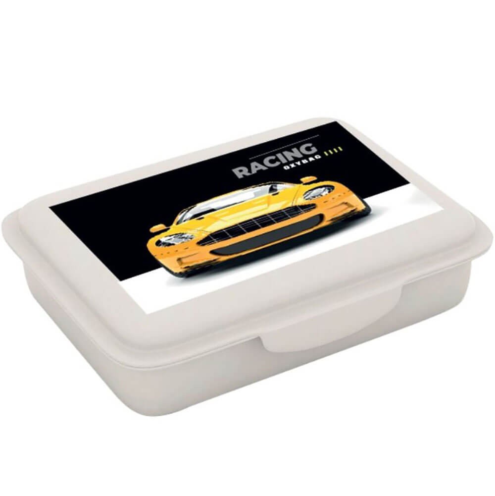 Plastový box na desiatu s motívom auta. Vhodný do umývačky, pre ohrev v mikrovlnke nechajte box otvorený.