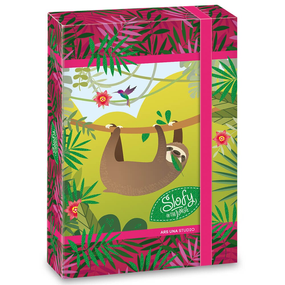 Box na zošity z kolekcie Slofy pre dievčatá, určený na školské zošity, domáce úlohy a ďalšie dokumenty do formátu A5. Vyrobený z vysoko odolného, tvrdého kartónu s hrúbkou 7 mm a s laminátovou úpravou, ktorý chráni zošity pred pokrčením. Box sa uzatvára pomocou širokej pružnej gumy. Kvalitná celoplošná potlač. Ideálny ako súčasť školskej výbavy. Rozmer: 22 x 15,5 x 4 cm. Výrobca: Ars Una