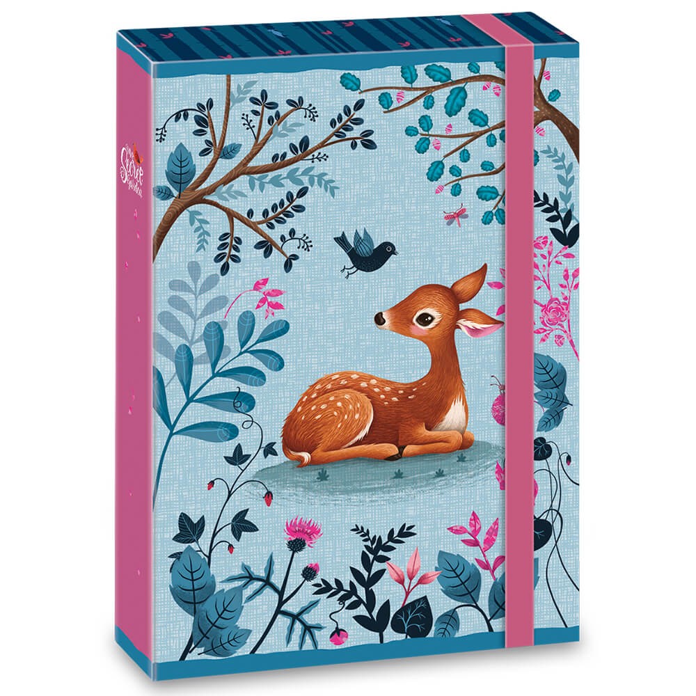 Box na zošity a knihy vo formáte A5 s motívom srnky. Box je laminovaný, lesklý, s gumou.