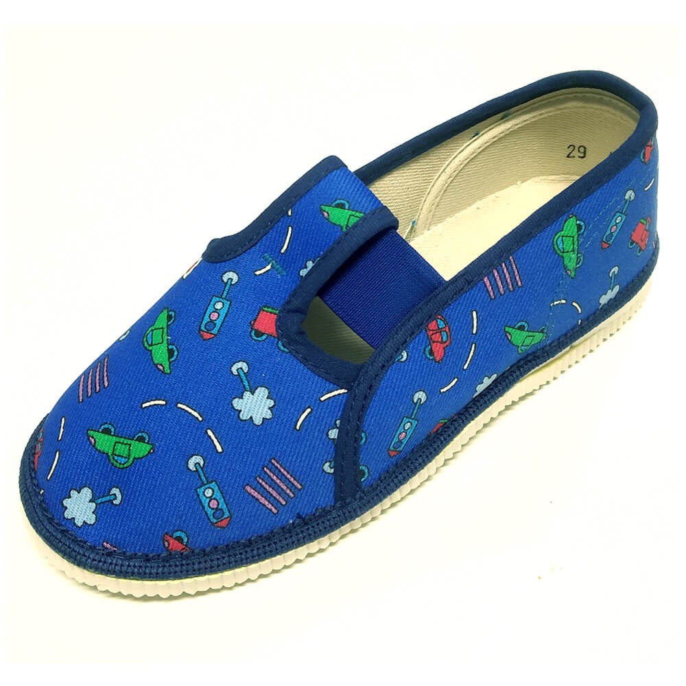 Chlapčenské papučky v modrej farbe s farebnými autíčkami. Domáca obuv českej výroby s atestom kvality Žirafa.Odporúčanie:- deťom kupujte domácu obuv aspoň o 10 - 15 mm dlhšiu ako je priama dĺžka nohy, aby pre rast a vývoj nohy bol dostatočný priestor- domáca prezúvková obuv je určená výhradne na užívanie v interiéroch
