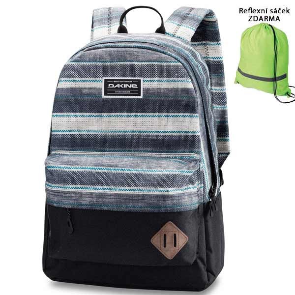 Priestranný jednokomorový batoh v decentnej čierno-šedej farebnej kombinácii určený pre voľný čas alebo školský batoh pre príležitostné nosenie. V 21 litrovej hlavnej komore si nájdu svoje miesto veci na voľnočasové aktivity, školu ako aj 15 palcový notebook. Veľké predné vrecko zdôrazňuje vo svojej forme klasický retro vzhľad batohu a umožňuje uskladnenie malých vecí, ako peňaženky alebo mobilného telefónu. Mäkko polstrovaný zadný panel a nastaviteľné ramenné popruhy poskytujú pohodlné nosenie a optimálnu priľnavosť. Pre lepšie tvarovanie je batoh vystužený v spodnej časti. Ako vizuálny detail zdobí batoh jednoduché logo značky Dakine na prednej strane batohu a dotvára tak jeho retro vzhľad.