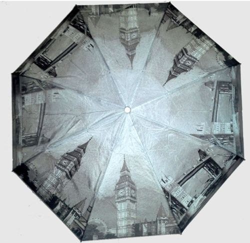 Dáždnik s potlačou mesta Londýn, polomer látky 61 cm, dĺžka dáždnika vrátane rukoväte 86 cm, automatické otváranie dešníku, 8 dielna konštrukcia. Dáždnik má celoskloláminatovú konštrukciu, ktorá je pružnejšia a odolnejšia.