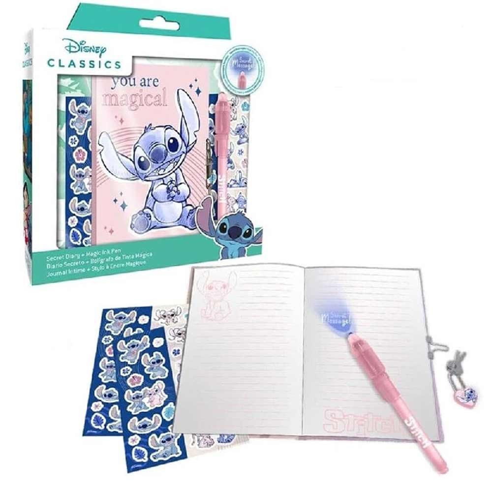 Zápisník linajkový so zámkom s magickým perom Stitch a 2 archy samolepiek v darčekovom balení. Píšte svoje správy pomocou pera Magic Ink Pen. Bude to vyzerať, ako by nebolo nič napísané, ale keď rozsvietite LED svetlo v hornej časti pera, odhalí vaše hlavné tajomstvo! K tomu všetkému je denník na zámok s kľúčom. Nikto sa tam nedostane!