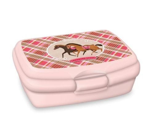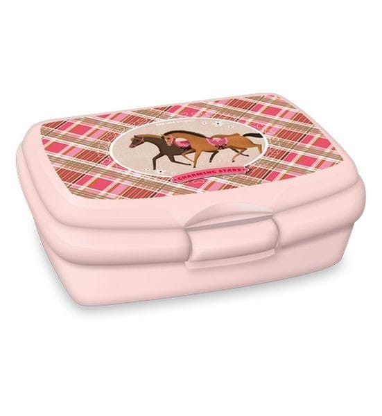 Desiatový box v ružovej farbe s motívom koní. Uzatváranie na klapku. Nevhodné do mikrovlnnej rúry! Iba ručné umývanie. Vhodný do každej školskej tašky alebo na výlety.
