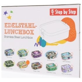- vo vnútri krabičky je vyberateľná, posuvná prepážka na oddelenie potravín napr. zeleniny, ovocia či sladkosti (materiál ušľachtilá oceľ)
