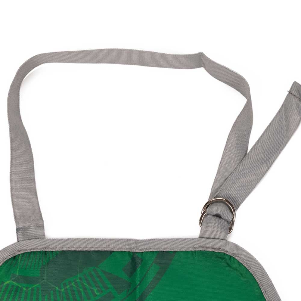 Zástera na výtvarnú výchovu z umývateľného materiálu. Navlieka sa nastaviteľným popruhom cez hlavu a zaviaže sa okolo tela pomocou šnúrok. Na prednej strane sú 2 vrecká na výtvarné pomôcky.