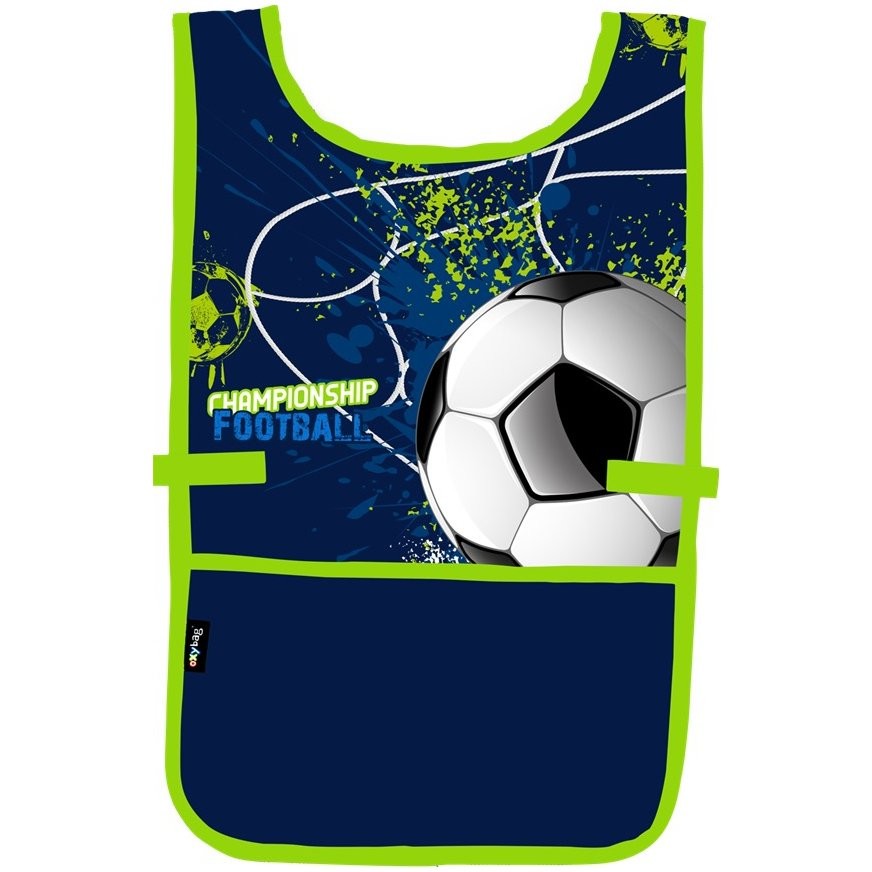 Zástera na výtvarnú výchovu Oxybag Futbal v pončo štýle do výtvarnej výchovy či na iné tvoriace aktivity. Obliekanie cez hlavu, po stranách zapínanie na cvok. Vpredu jedno priestranné vrecko.