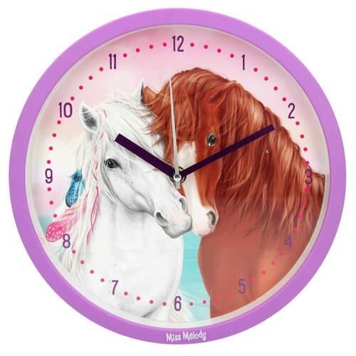 Detské nástenné hodiny Miss Melody a Pelly, krásny doplnok dievčenskej izbičky. Hodiny sú poháňané kvalitným strojčekom s dlhou životnosťou a vysokou presnosťou. Hodiny majú tichý chod.