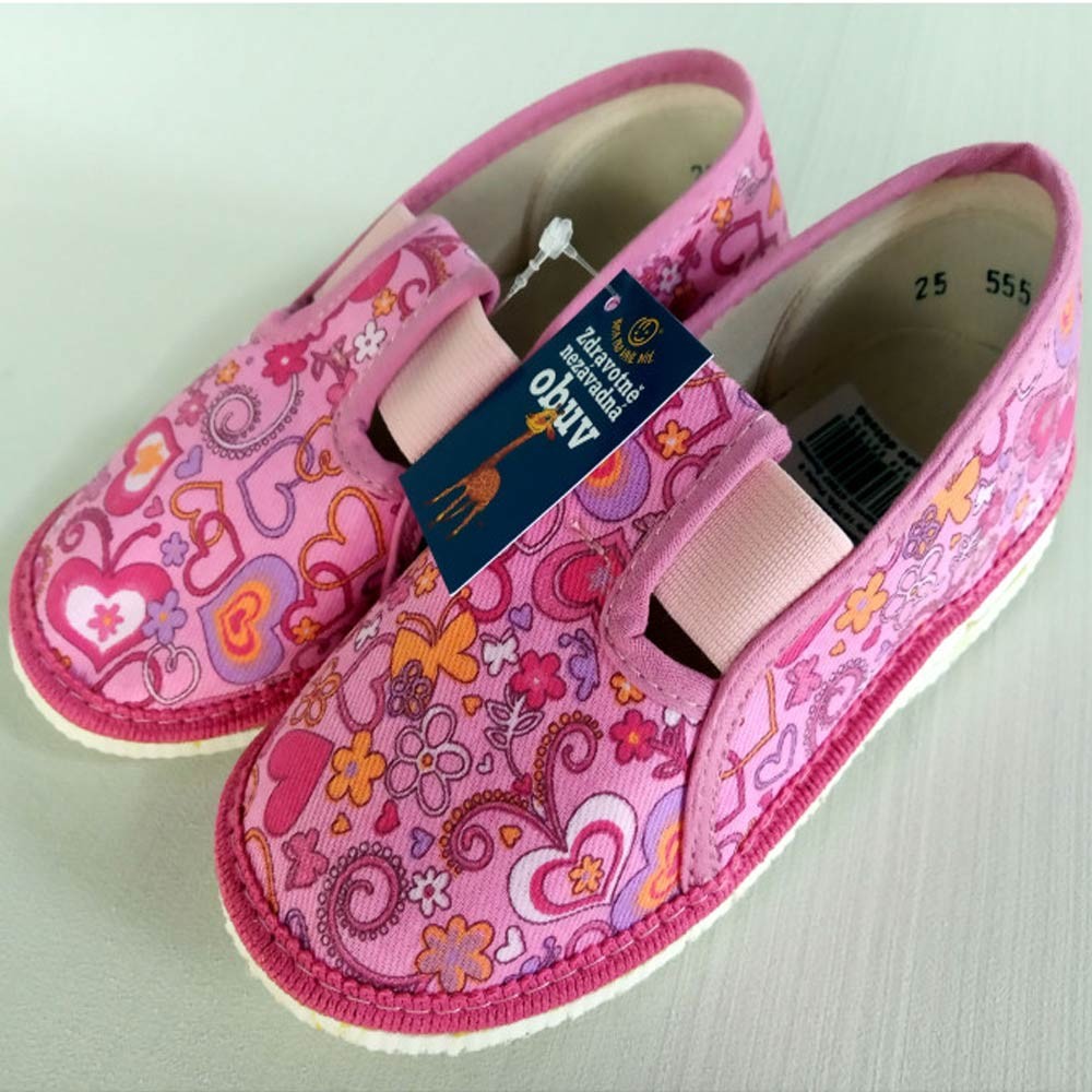 Detské papuče Čechtín ružové so srdiečkami a kvietkami