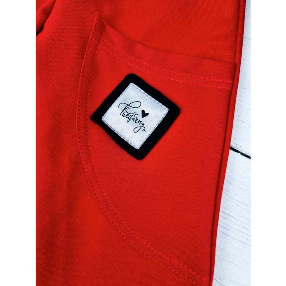 Detské tepláky v červenej farbe z kolekcie rebel a s originálnym prešitím. Majú klasický strih, v spodnej časti majú náplet, ktorý zaistí príjemné nosenie. Vďaka nápletu sa nohavice nebudú pri aktivitách vyhrňovať, tepláky majú v páse gumu a funkčné šnúrky.