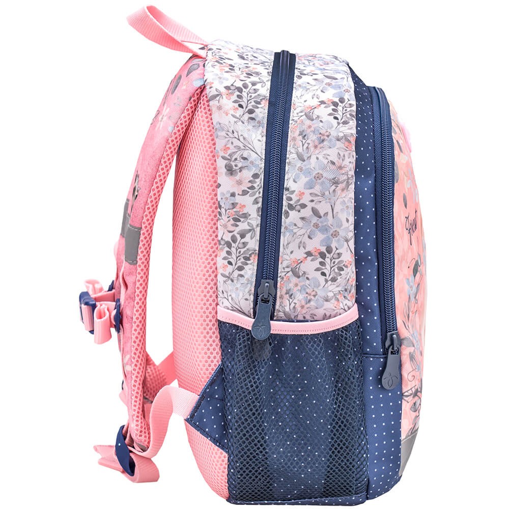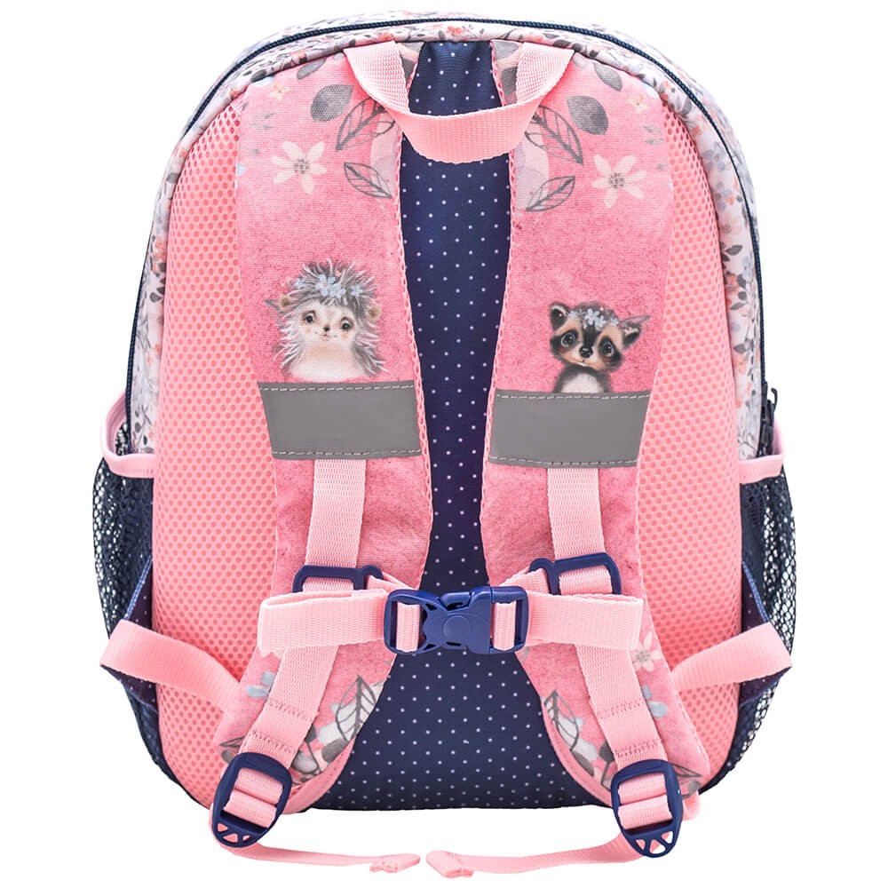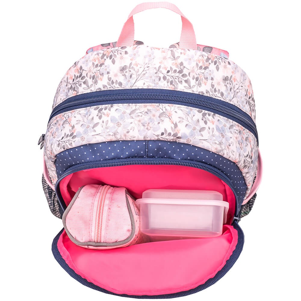 Chrbát batôžku je polstrovaný mäkkou sieťovanou penou, ramenné popruhy sú širšie, tiež polstrované a ľahko nastaviteľné. Hrudný popruh poslúži k optimálnemu rozloženiu záťaže a zabraňuje skĺznutiu batohu z detských ramien. Batoh má 2 komory - väčšia komora má na podšívke tlačenú menovku. Bočné sieťované vrecká pojmú fľašu na pitie (až 0,7 l) alebo dáždnik.