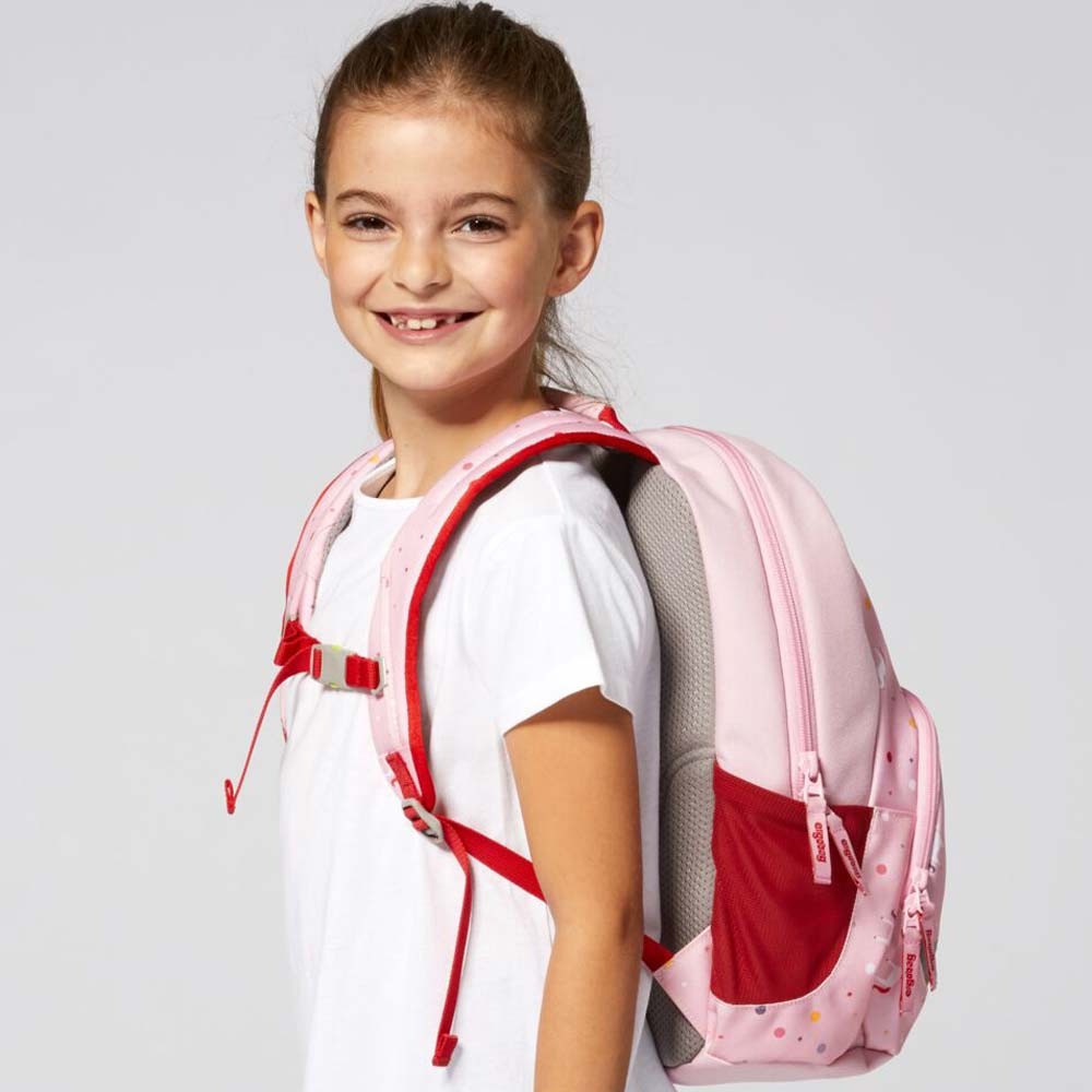 Reflexné prvky slúžia k dobrej viditeľnosti dieťaťa aj za nevľúdneho počasia. Látka batohu je impregnovaná, takže zaisťuje vysokú odolnosť voči dažďu a nečistotám (vodný stĺpec 1500mm). Batôžtek váži iba 370g.