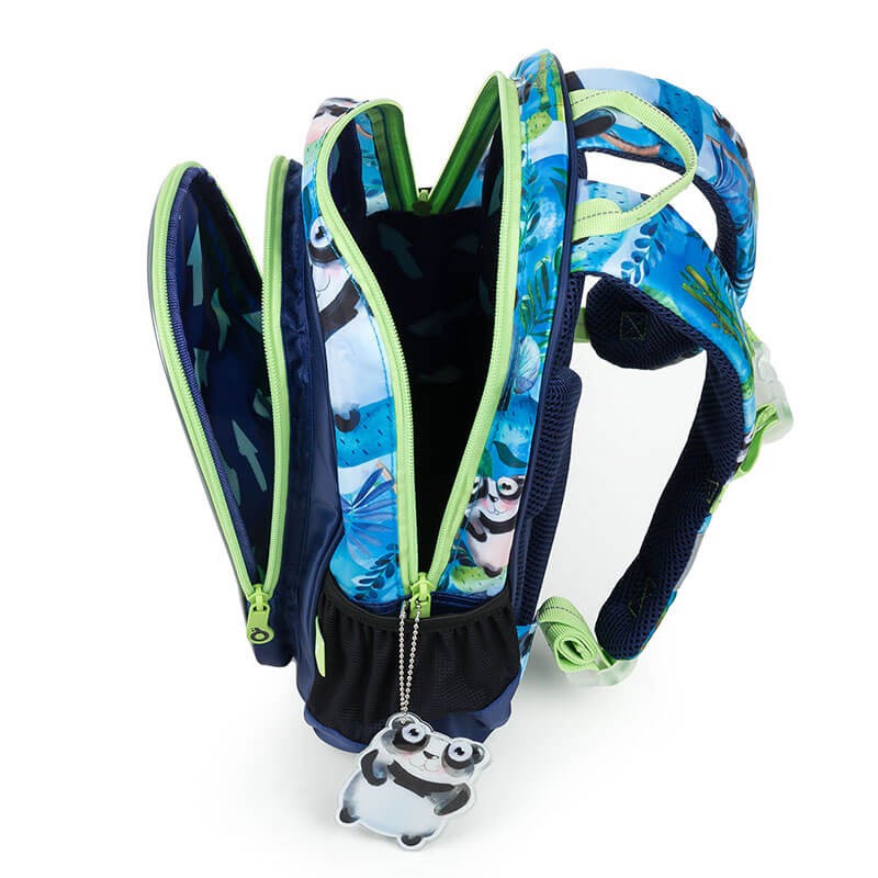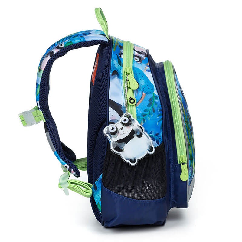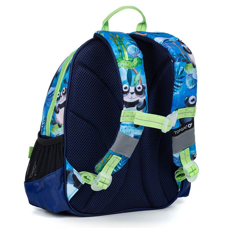 Detský batôžtek z kolekcie firmy Topgal so zvieratkovým motívom. Batôžtek je vhodný pre deti od dvoch rokov. Poslúži na výlety, do krúžkov, do škôlky aj k babičke. Má jednu komoru s menovkou, priestranné predné vrecko na suchý zips a dve pevné postranné kapsičky napr. na fľašu s pitím. Batôžtek má pohodlné polstrované popruhy aj chrbtovú výstuhu, nechýba ani hrudný popruh a praktické pútko pre nosenie v ruke. Batoh je bohato vybavený reflexnými prvkami, takže deti budú s týmto batôžkom neprehliadnuteľné. Chlapčekov pobaví obrázok pandy, farebne krásne zladený s batohom rovnako ako prívesok na zipse v tvare pandy.