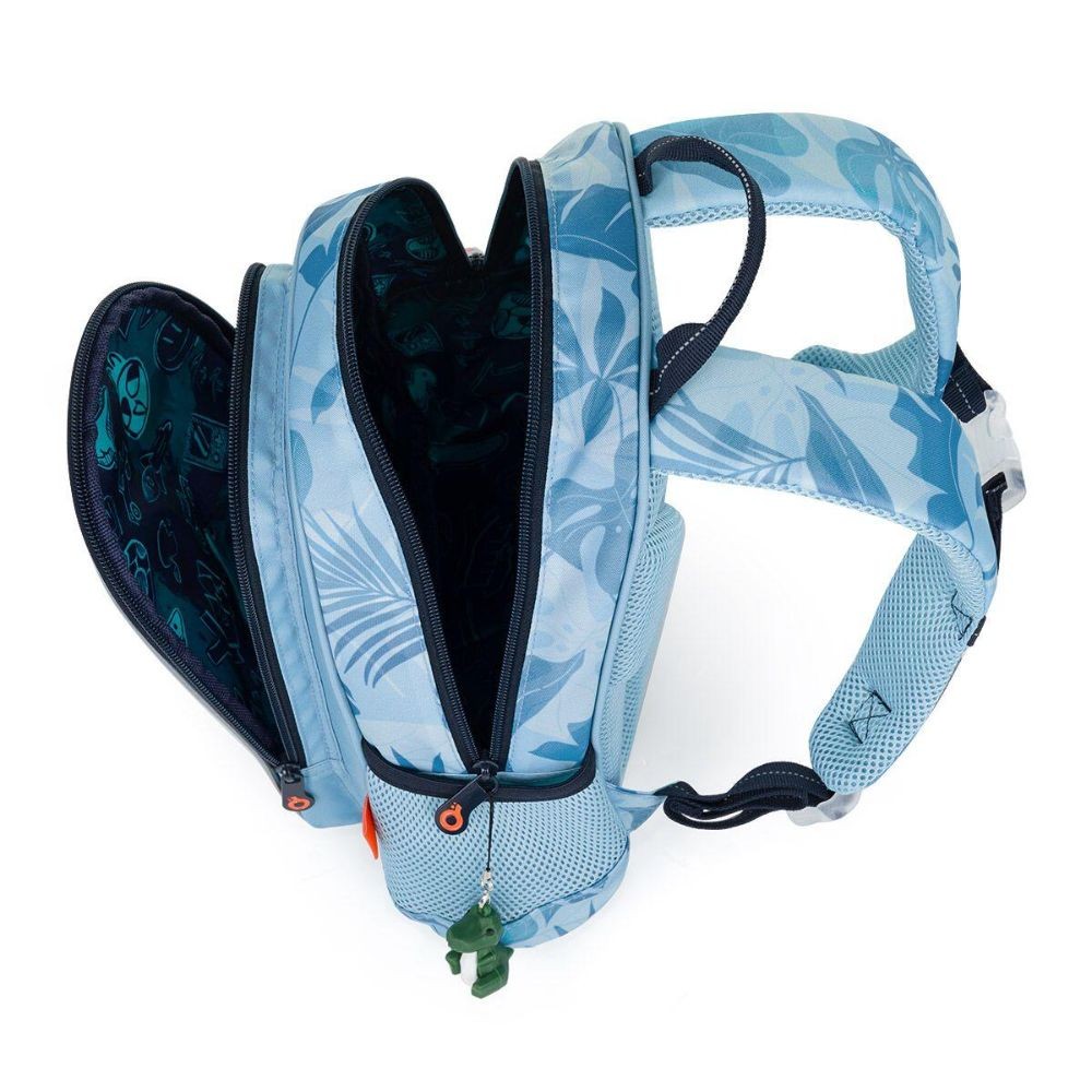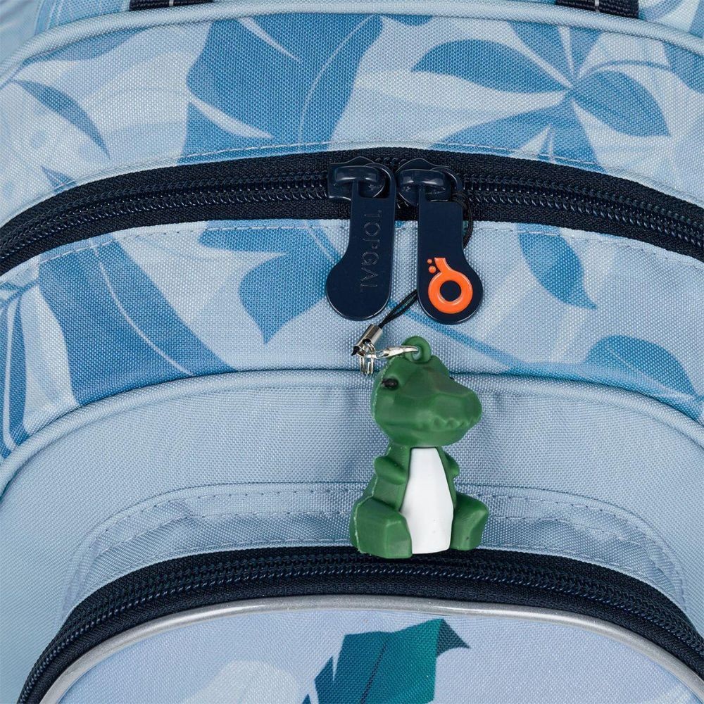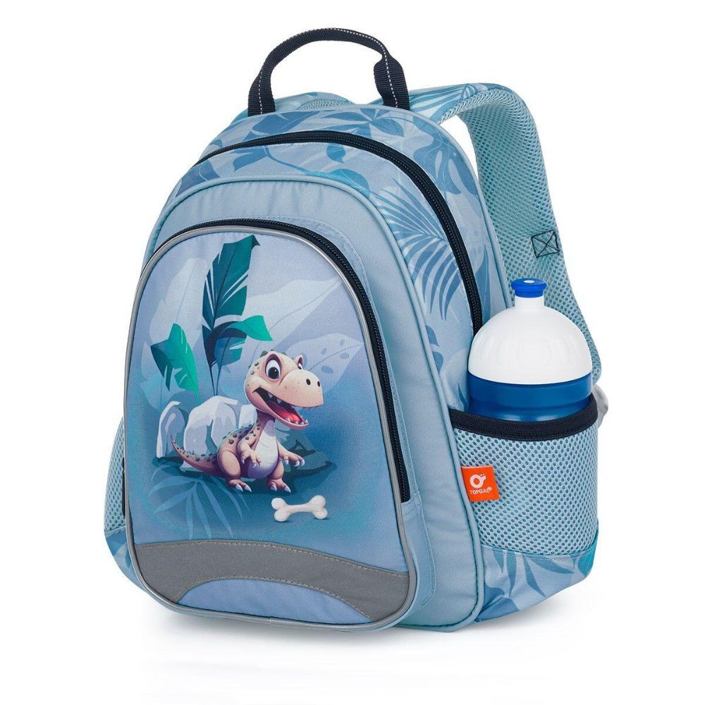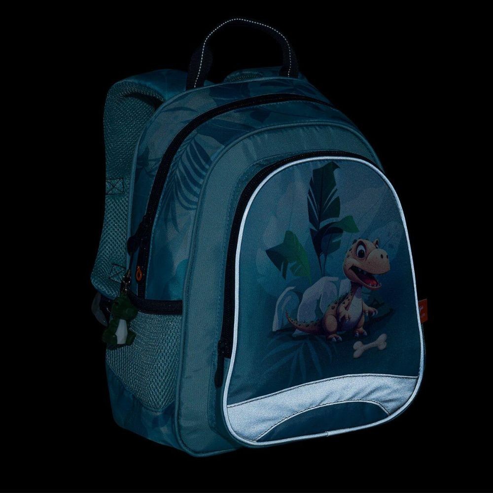 Svetlomodrý batôžtek pre chlapcov v predškolskom veku. Mládě dinosaura dopĺňa jeho kamarát – prívesok v tvare dinosaura. Batôžtek pre deti od dvoch rokov sa hodí na výlety, do krúžkov, do škôlky aj k babičke. Dobre však poslúži aj malým školáčkam a školákom na školské výlety. Pozor – formát A4 sa doň nezmestí. Batoh má jednu hlavnú komoru s menovkou, priestranné predné vrecko na zips a dve malé bočné elastické vrecká vhodné napr. na fľašu s pitím. Samozrejmosťou sú reflexné prvky, pohodlné polstrované ramenné popruhy a polstrovaný chrbát. Batôžtek má aj praktické pútko na nosenie v ruke.