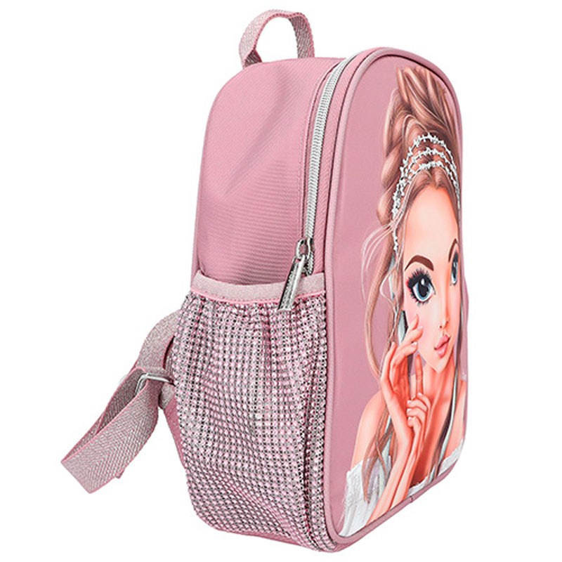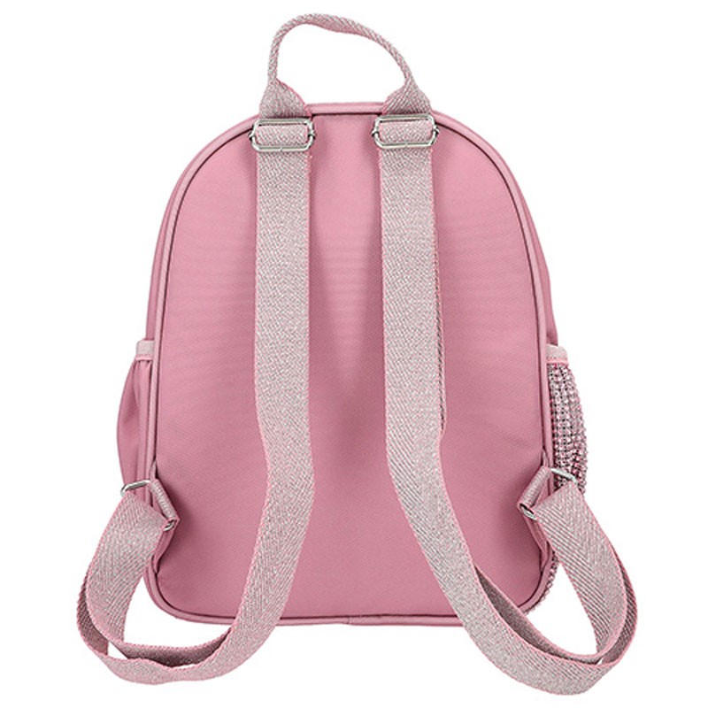 Tento batoh je ideálny na školský výlet, alebo na telesnú výchovu. Disponuje veľkým vreckom, v ktorom sa nachádza malá priehradka. Nechýbajú ani bočné vrecká s gumou na fľašu. Batoh má nastaviteľné ramenné popruhy. Batôžtek je krásne dozdobený kamienkami a trblietkami.