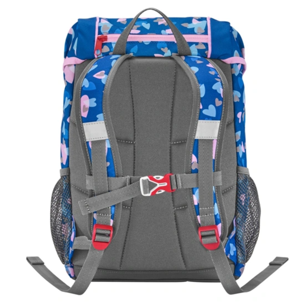 Priestranný detský batoh, hmotnosť 380 g, optimálny pre deti do škôlky, ale aj ako voľnočasový batoh pre deti od 1. do 4. triedy má vymeniteľné obrázky MAGIC MAGS, ergonomicky tvarovaný chrbát a ergonomicky tvarované ramien. Reflexnými prvkami a výškovo nastaviteľný hrudný popruh sú samozdrejmosťou. Batoh má aj pútko na nosenie / zavesenie av klope batohu je vrecko uzatvárateľné na zips. Na batohu sú dve otvorené bočné vrecká a predné vrecko na zips s reflexnými prvkami. Jednoduchá pracka na uzavretie, priestranné hlavné vrecko so sťahovadlom, vrecko A4 s elastickým pásikom a krúžok na zavesenie príveskov, kľúčov apod. V batohu je menovka. Batoh pre deti má umývateľné dno batohu a vodoodpudivý materiál. Je teda ideálna aj na výlety.