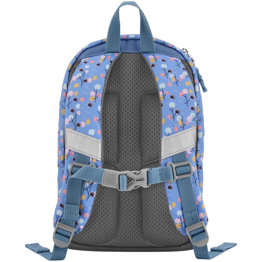 Mäkký ergonomicky tvarovaný vypolstrovaný chrbát, ergonomicky tvarované a polstrované ramenné popruhy s reflexnými prvkami, výškovo nastaviteľný hrudný pás s prackou, predné vrecko s reflexným prvkom na prednej strane batohu je reflexné logo a ďalšie reflexné prvky. Gumové pútka na zavesenie príveskov, plyšákov a pútko na zavesenie. Kryté kvalitné zipsy, pre deti sú ľahko obsluhovateľné. Pevné dno ochráni pred nečistotami a vlhkosťou. Samostatná vnútorná priehradka na prezlečenie alebo plyšovú hračku a priestor pre menovku vo vnútri batohu.