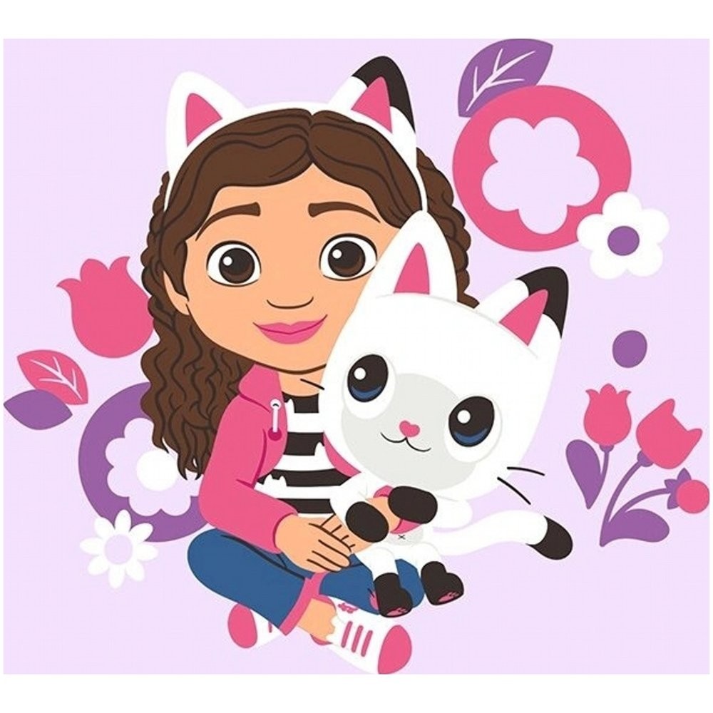 Detský uteráček s motívom Gabín Kúzelný domček. Rozmer uteráka je 30x50 cm. Farebná strana uteráka je z jemne strihaného froté, rubovú stranu tvorí husto tkaná froté slučka bielej farby.