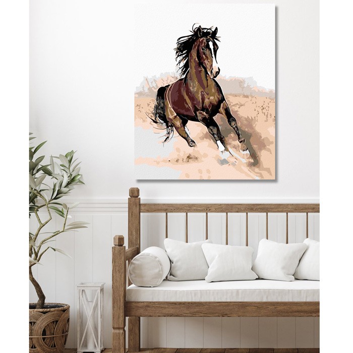 Jedná sa o kreatívnu a zábavnú techniku lepenia farebných kamienkov na predtlačené obrazy. Obrázok s motívom hnedého koňa predovšetkým dievčatám urobí veľkú radosť.