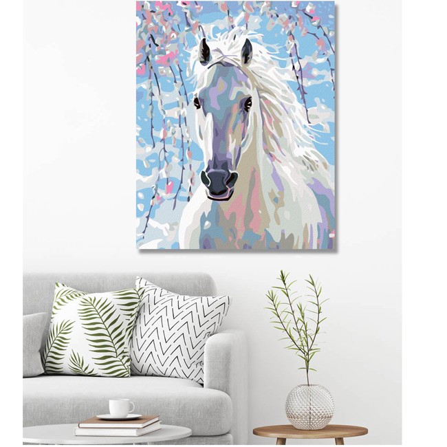 Diamantové maľovanie na ráme - BIELÝ KÔŇ 40x50 cm