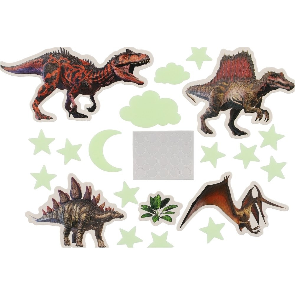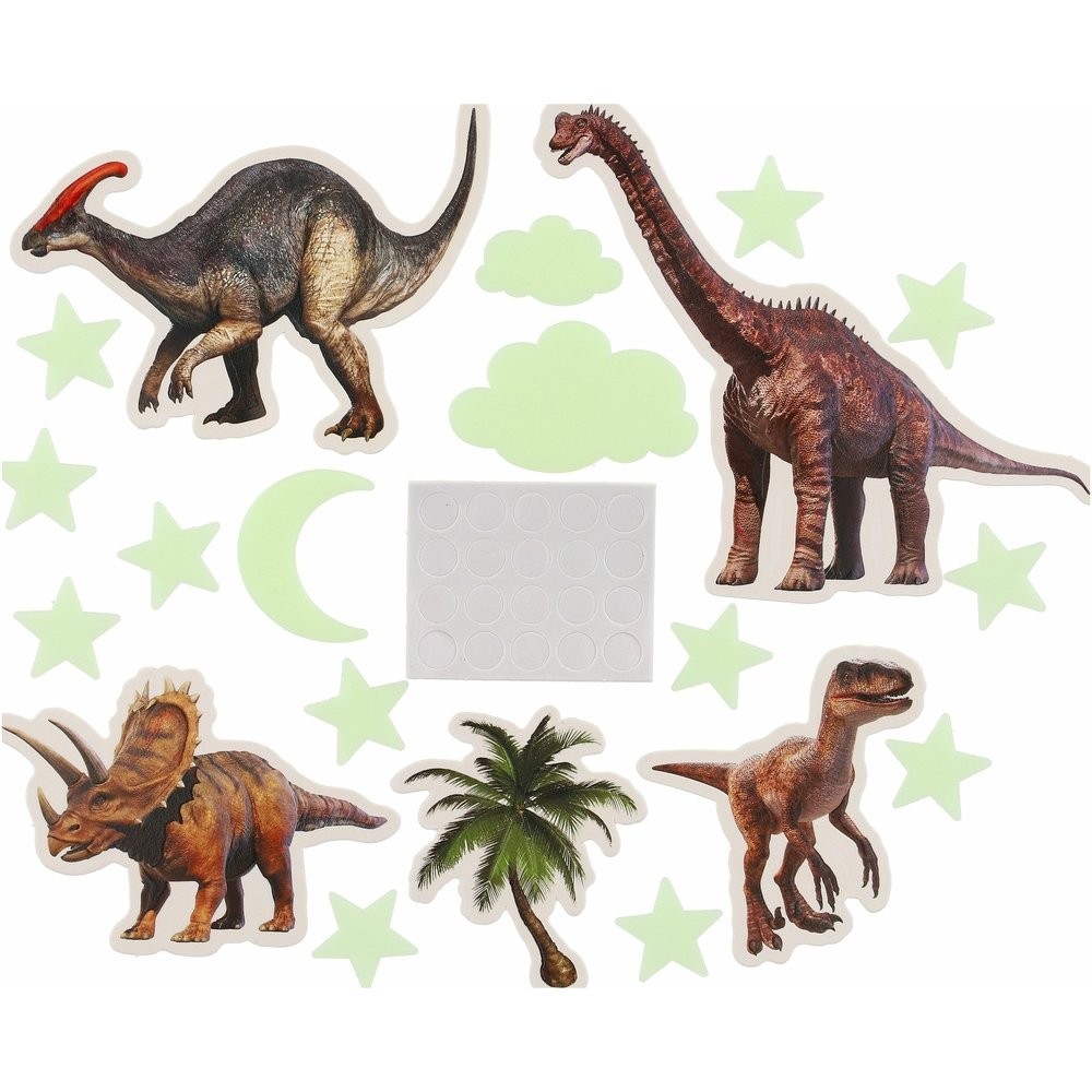 Prineste trochu prehistorického kúzla do detskej izby so svietiacimi dinosaurami na stenu alebo strop! Tieto samolepky na stenu sa po nasvietení v tme rozsvietia a vytvoria v izbe fascinujúcu atmosféru. Ideálne pre malých objaviteľov, ktorí majú radi dinosaurami a kúzla temnoty. Svietiaci dinosaury nielen že prinášajú do detskej izby zábavu, ale taktiež pomáhajú vytvoriť upokojujúce nočné prostredie. Perfektná ako dekorácia pre detskú izbu, ktorá oživí priestor a urobí večery ešte kúzelnejšími.