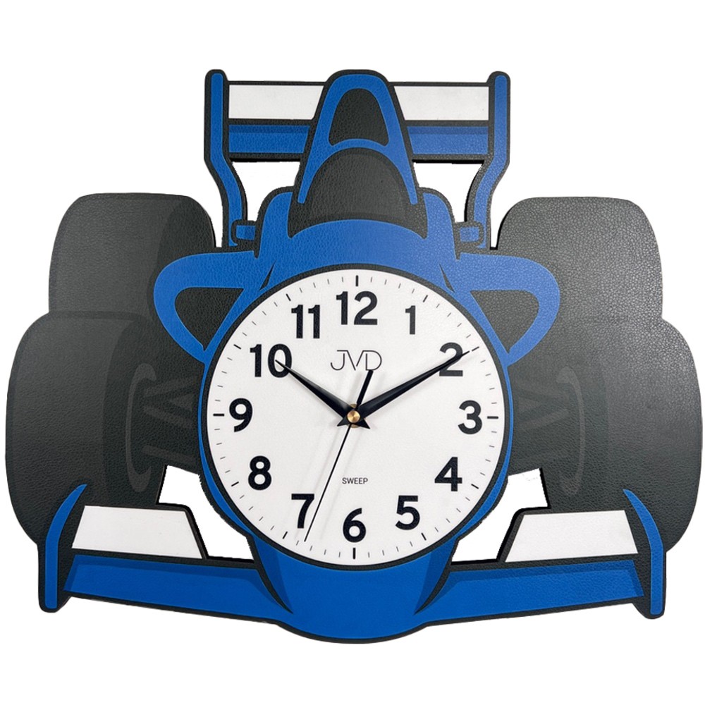 Dizajnové nástenné hodiny JVD Závodné auto modré