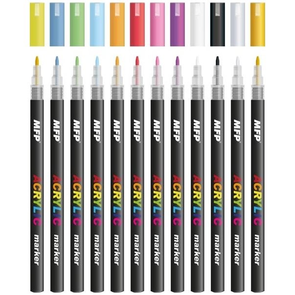 Dekoračný popisovač so šírkou hrotu 1 mm je vhodný na maľovanie povrchov ako je kameň, keramika, porcelán, sklo, drevo, textil, plátno, kov, plast, polymerová hlina a pod..