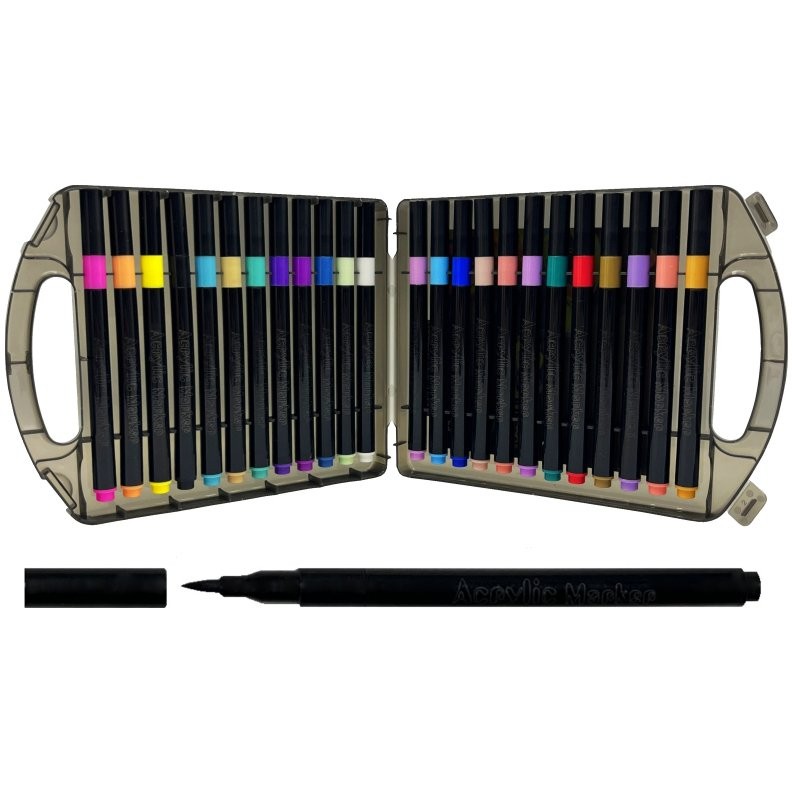 Súprava 24 kusov akrylových fixiek so štetcovým hrotom.