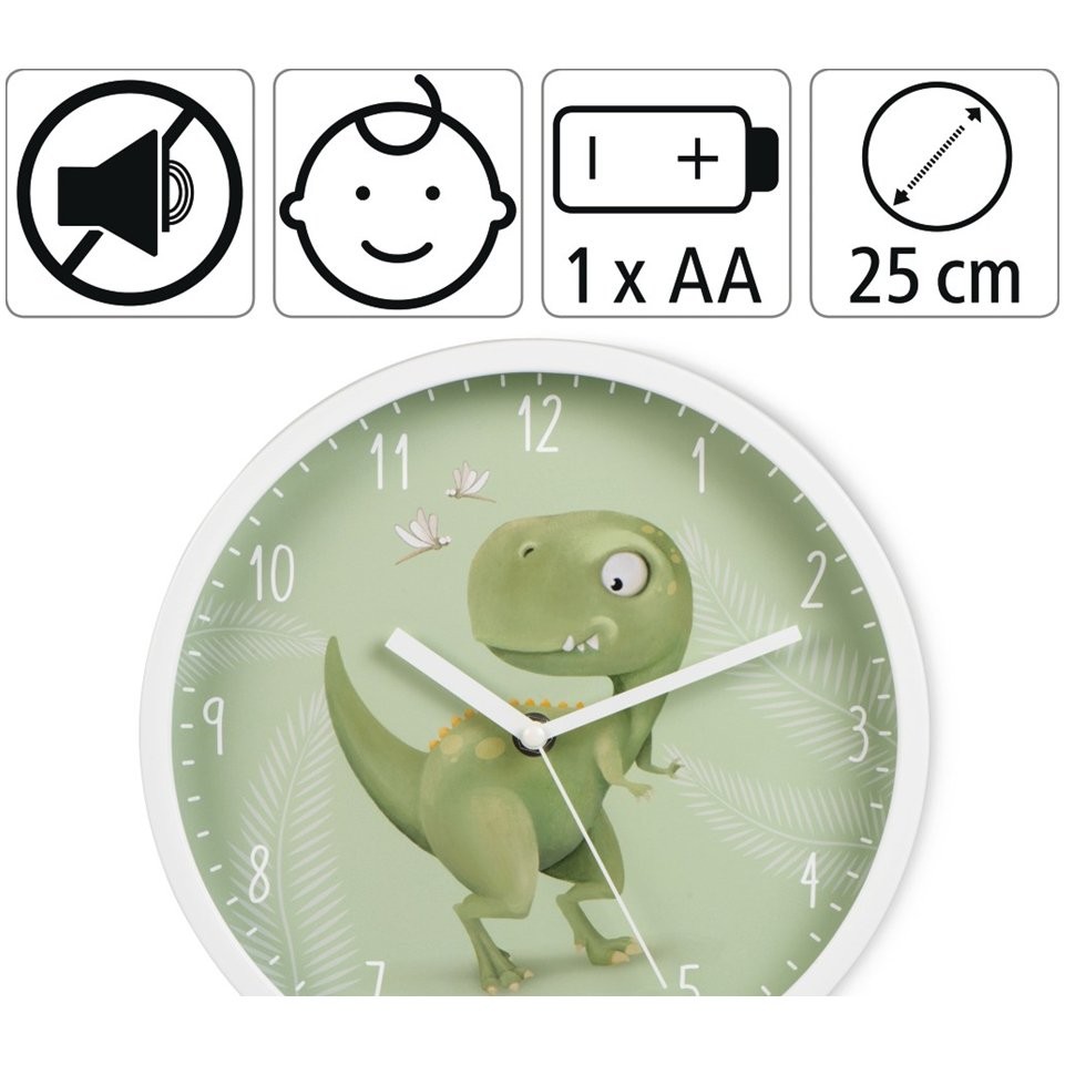 Hama Happy Dino, detské nástenné hodiny, priemer 25 cm, tichý chod