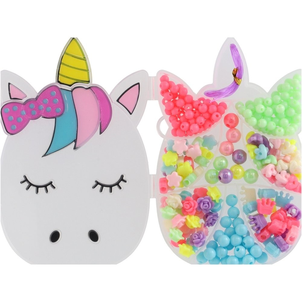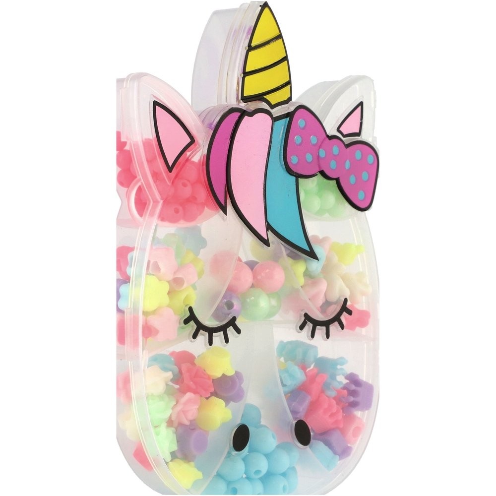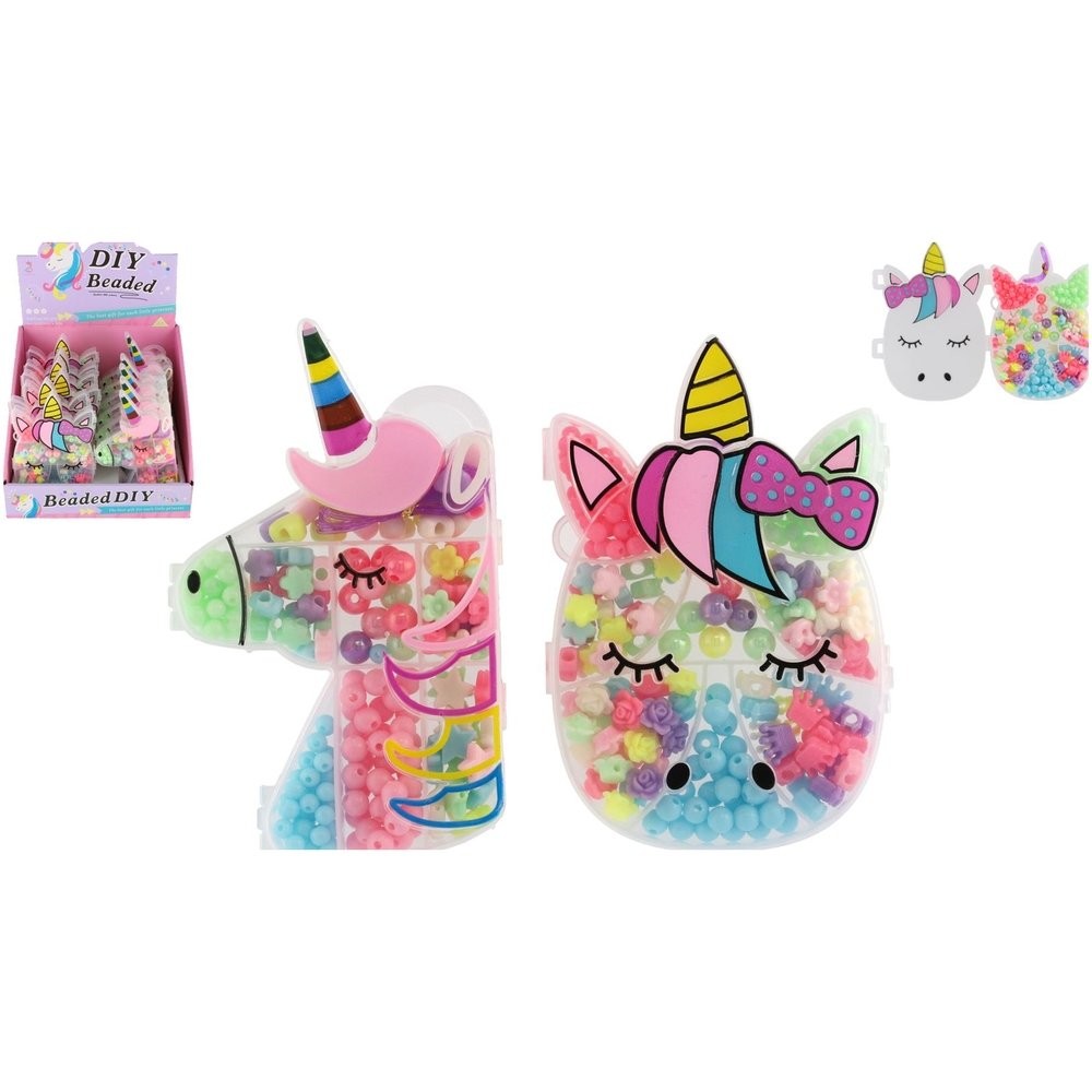 Korálky plastové farebné 2 druhy vovej krabičke tvaru hlavy jednorožca
