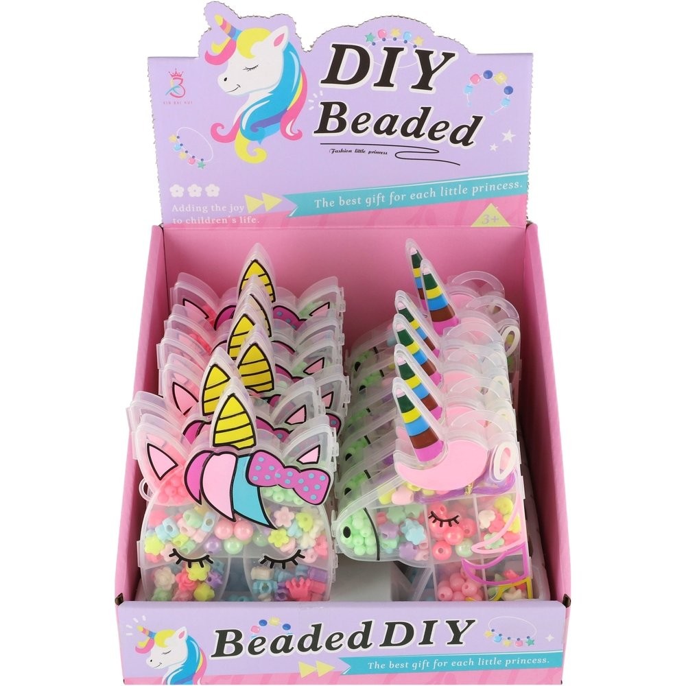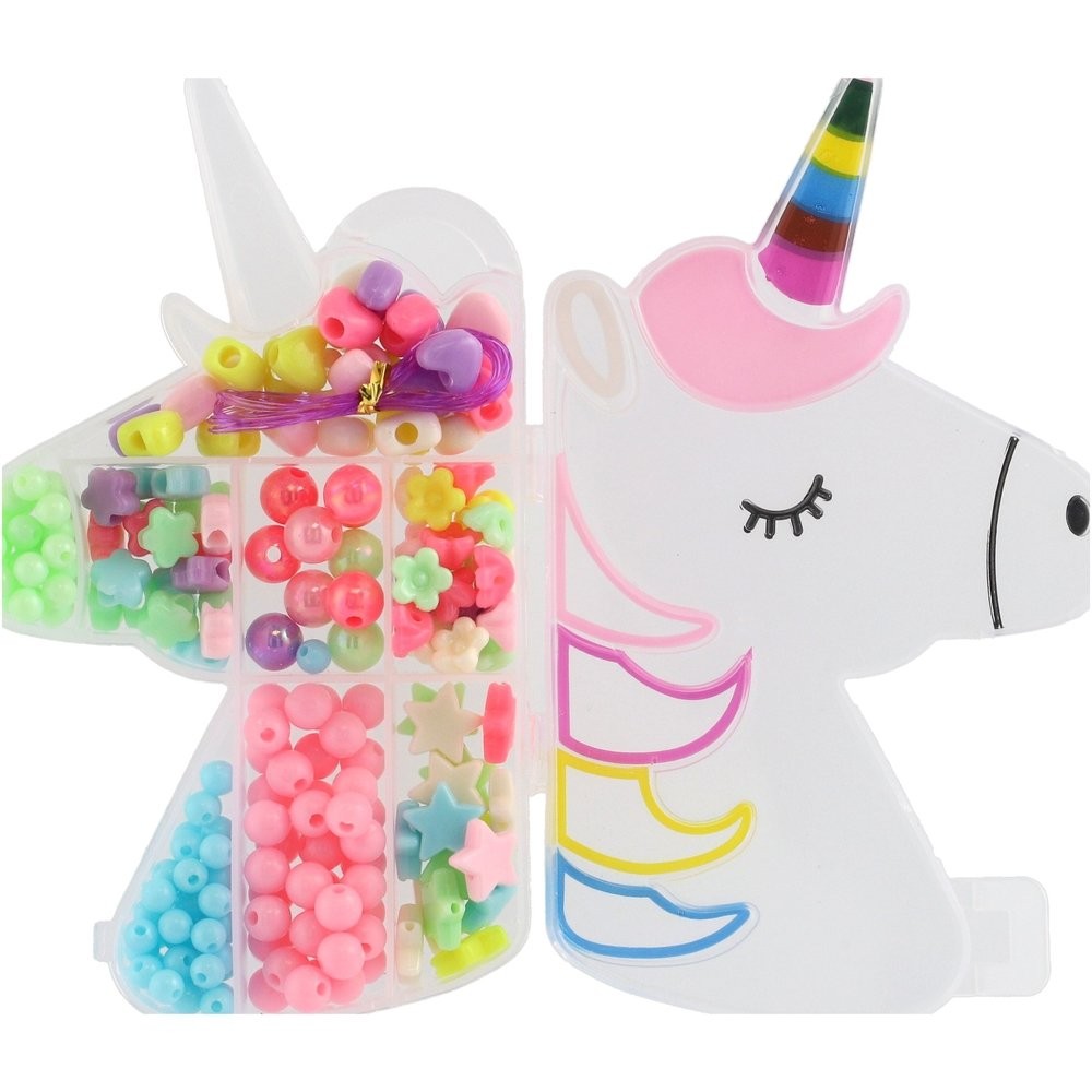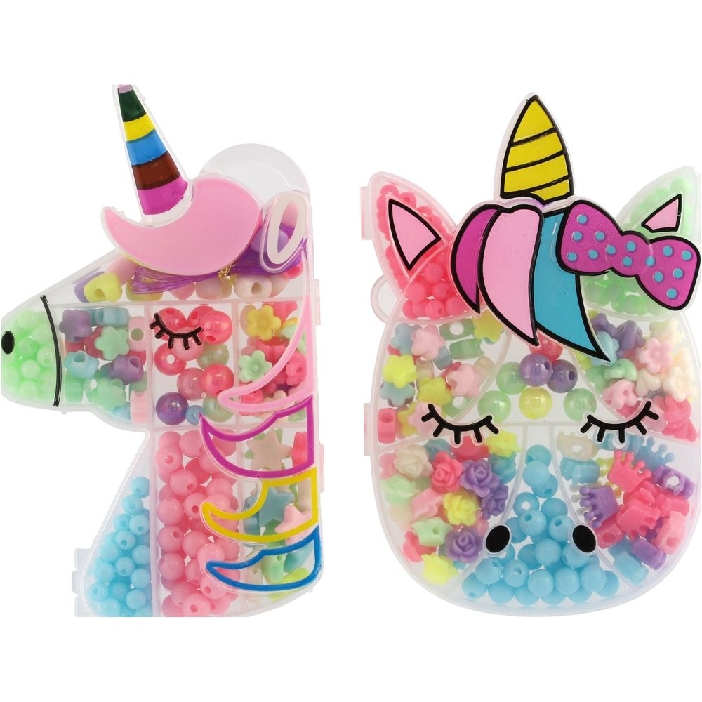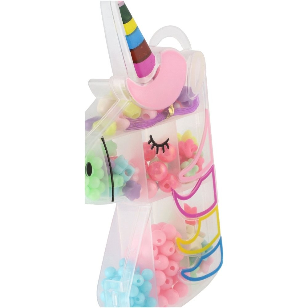 Korálky plastové farebné 2 druhy vovej krabičke tvaru hlavy jednorožca